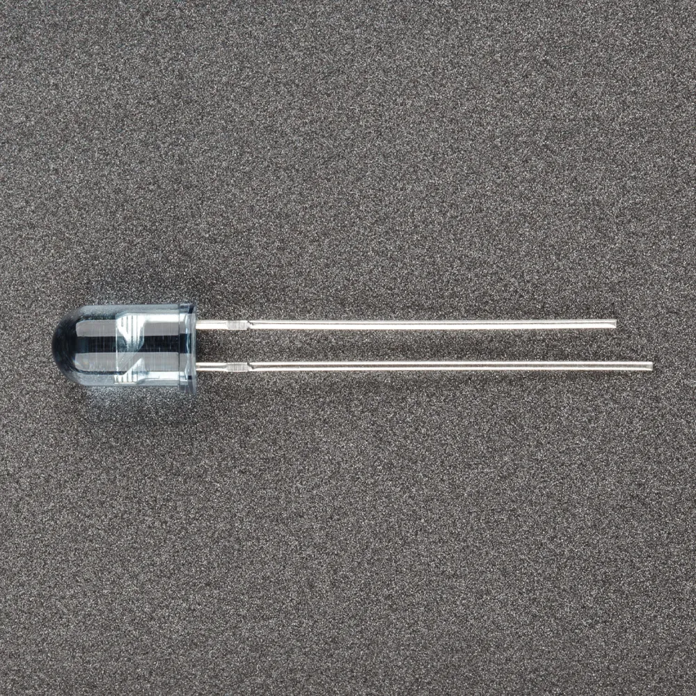 Поставка под заказ от 5000 шт. Выводной круглый светодиод, d=5 мм, прозрачная линза, широкоугольная. Цвет свечения ИК (940 нм). Угол излучения 60°. Сила света Iv=5-15 мкд (интенсивность излучения 4-20 mW/Sr) при If=50 мА. VF=1.2-1.5 В.