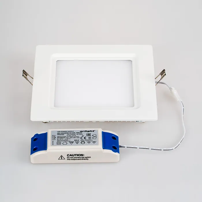Тонкая панель 16Вт / БЕЛЫЙ 6000K / 810лм / smd 2835 / 120°. Размер 170x170x23мм (в отверстие 150x150мм). Корпус квадратный, с фаской, белый IP20. Питание от сети 220VAC, драйвер в комлекте 350mA 48V.