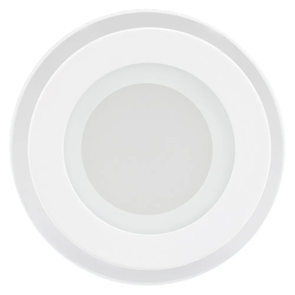 Стеклянная круглая панель 6Вт / ДНЕВНОЙ 4000K / 430лм / 120°. Размер Ф96x45мм (в отверстие Ф72 мм). Корпус белый. Питание от сети 230VAC, мощность 6Вт, драйвер в комлекте 300mA 15-25V. Диапазон рабочих температур -10°..+40°C. Для помещений.