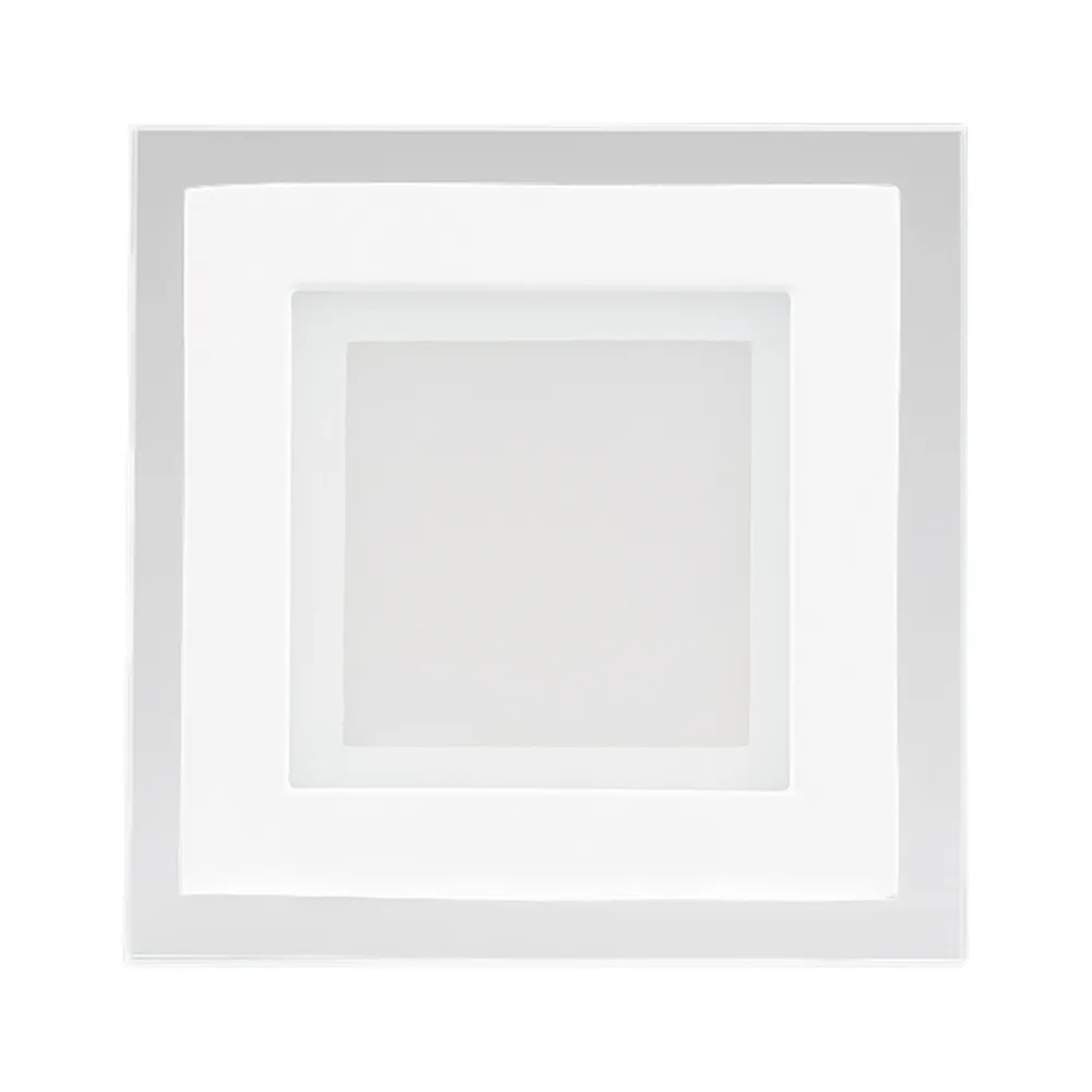 Стеклянная квадратная панель 6Вт / ТЕПЛЫЙ 2700-3000K / 430лм / 120°. Размер 96x96x40мм (в отверстие 75x75мм). Корпус белый. Питание от сети 230VAC, драйвер в комлекте 300mA 15-25V. Диапазон рабочих температур -10°..+40°C. Для помещений.
