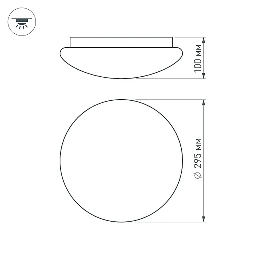 Накладной светильник 16Вт / ДНЕВНОЙ 4200K / 1150лм / 120°. Размер Ф295 x 100мм. Пластиковый объёмный молочный рассеиватель. Питание от сети 220VAC. Энергосберегающее освещение для квартир, подъездов, домов.