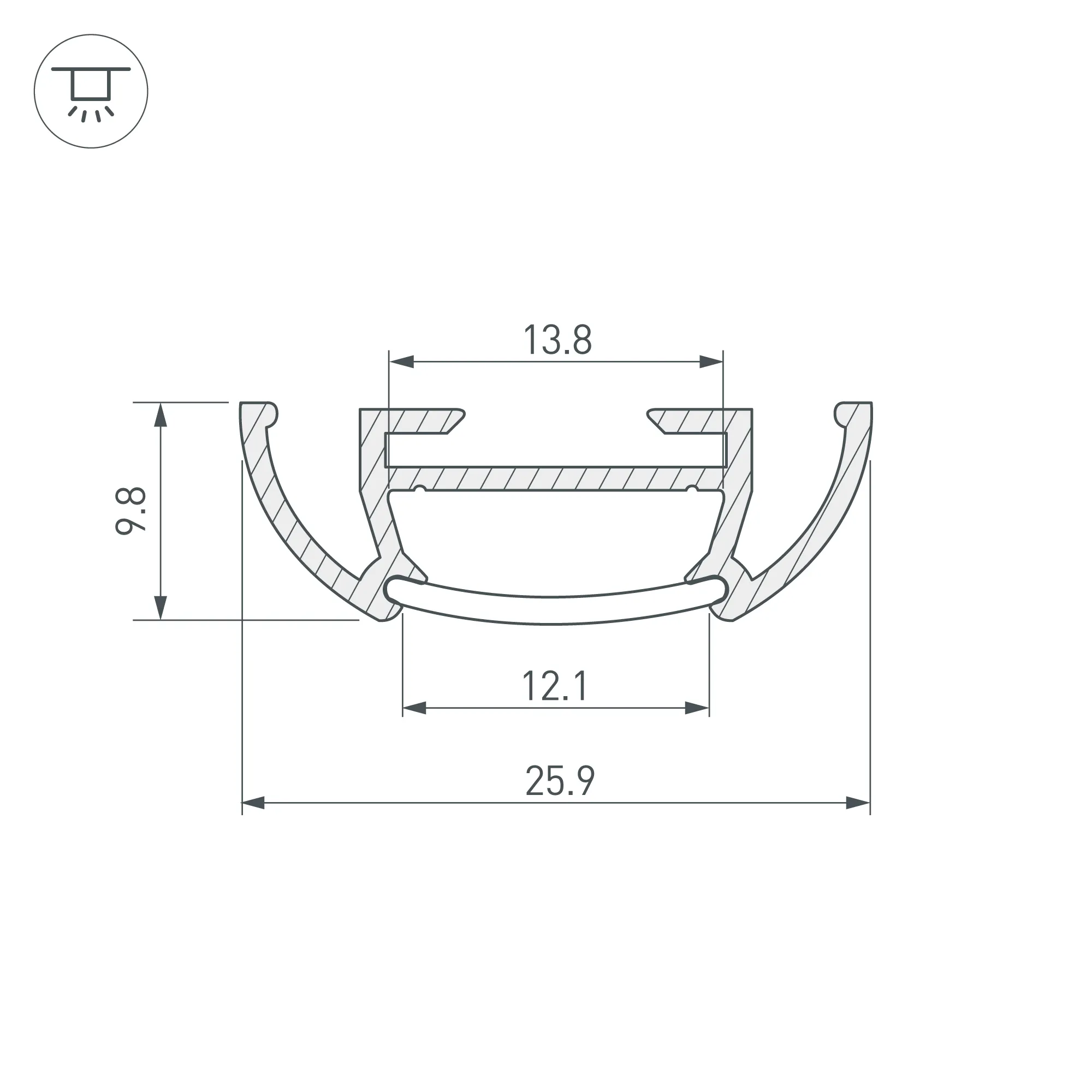 Под заказ от 20 м. Алюминиевый анодированный профиль для светодиодных лент и линеек. Габаритные размеры (L×W×H): 2000x25,9x9,8 мм. Ширина площадки для ленты 13,8 мм. Экраны, заглушки и другие аксессуары приобретаются отдельно. Цена за 1 метр.