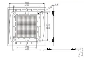 Мощный светодиод типа COB, размер 56×52 мм. Чипы USA Bridgelux 45mil. Цвет свечения белый (6000-6500 К). Угол излучения 120°. Световой поток 24000-26000 лм при If= 7000 мА, P=200 Вт. VF=30-34 В.