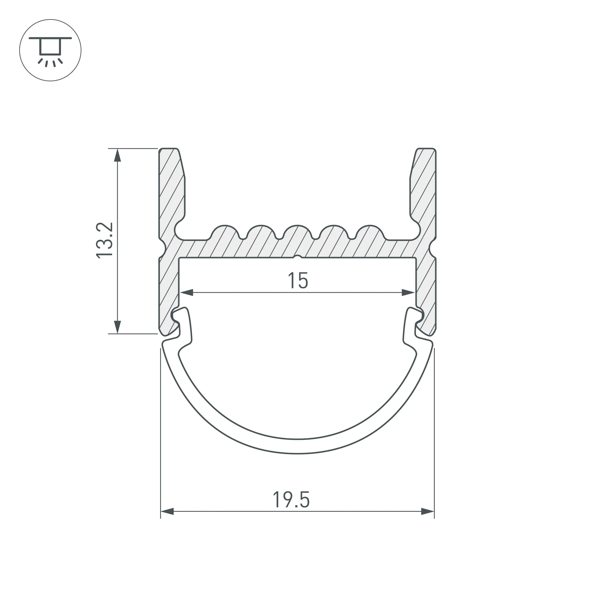 Алюминиевый анодированный накладной профиль для светодиодных лент и линеек. Большой выбор круглых, квадратных, фигурных экранов и заглушек. Габаритные размеры (L×W×H): 2000x19,5x13,2 мм. Ширина площадки для ленты 15 мм. Экраны, заглушки и другие аксессуары приобретаются отдельно. Цена за 1 метр.