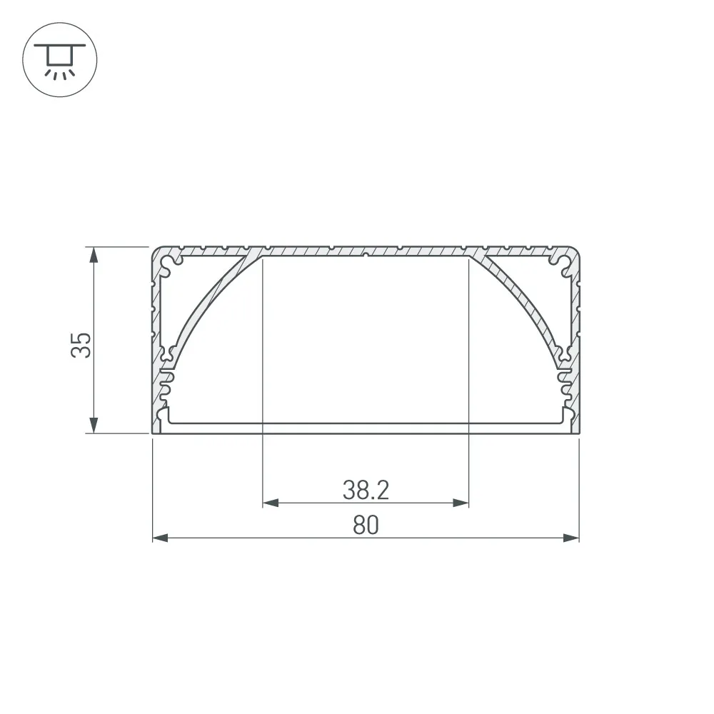 Комплект с экраном. Алюминиевый анодированный профиль для светодиодных лент и линеек. Габаритные размеры (L×W×H): 2000x80x35 мм. Ширина площадки для ленты 38,2 мм. Аксессуары приобретаются отдельно. Цена за комплект.