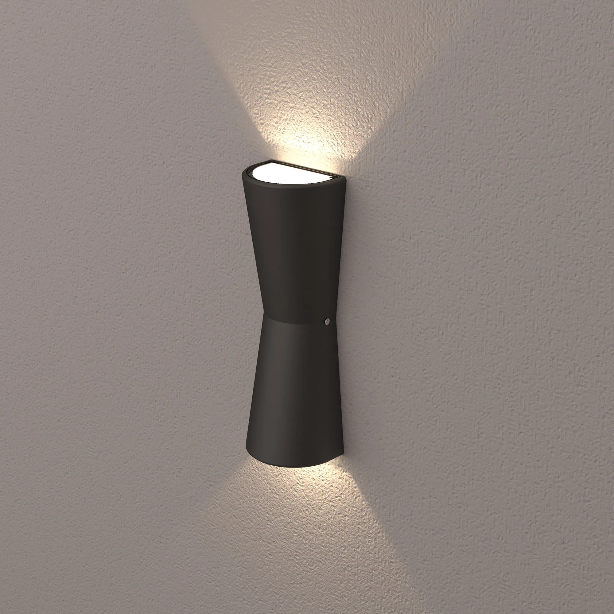 Светодиодный светильник для наружной подсветки стен, свет вверх-вниз. Цвет ДНЕВНОЙ БЕЛЫЙ 4000К, 630Лм, светодиоды 2x5Вт Bridgelux, угол 97°. Влагозащищенный корпус IP54 - черный алюминий, экран закалённое стекло. Питание 220В, мощность 10 Вт. Размеры ДхШхВ -260х90х60 мм.