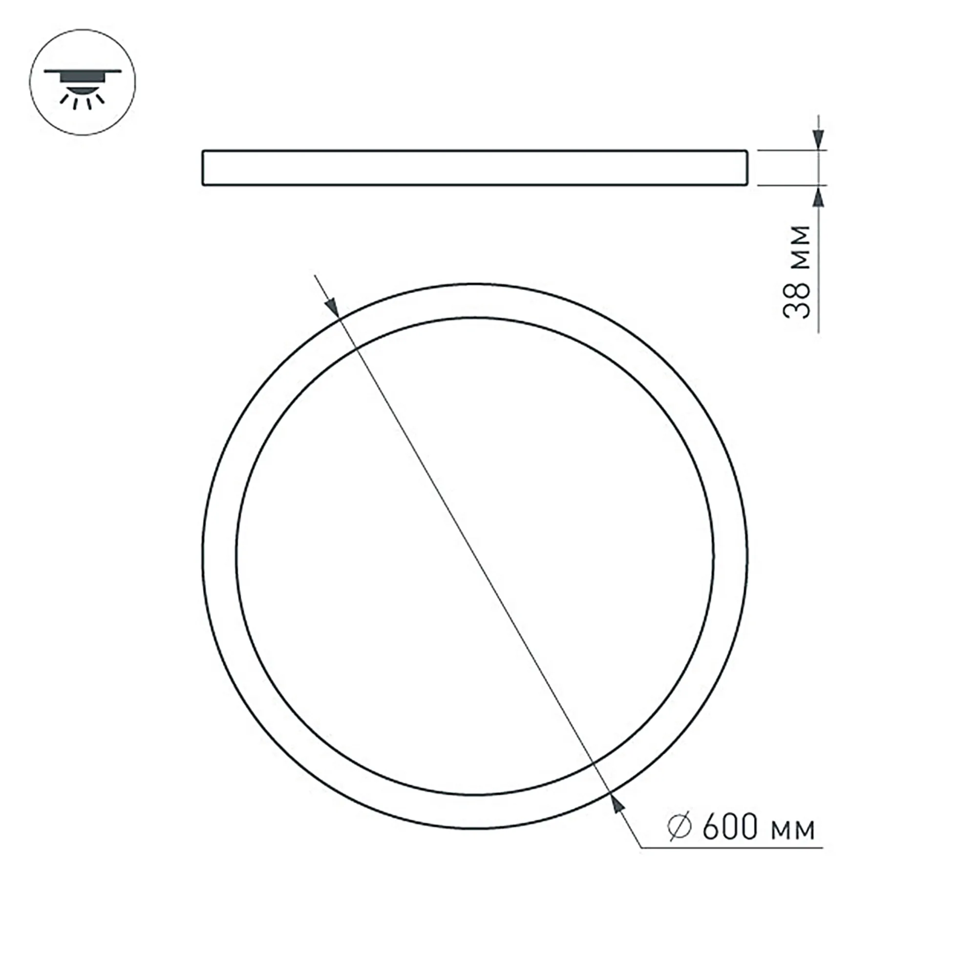 Накладная круглая панель 48Вт, белый корпус. Цвет ТЕПЛЫЙ БЕЛЫЙ 3000K / 3840лм / 120°. CRI >80, smd2835. IP40. Размер Ф600x38мм. Питание 200-240 VAC. В комплекте драйвер (27-42V, 1200mA).