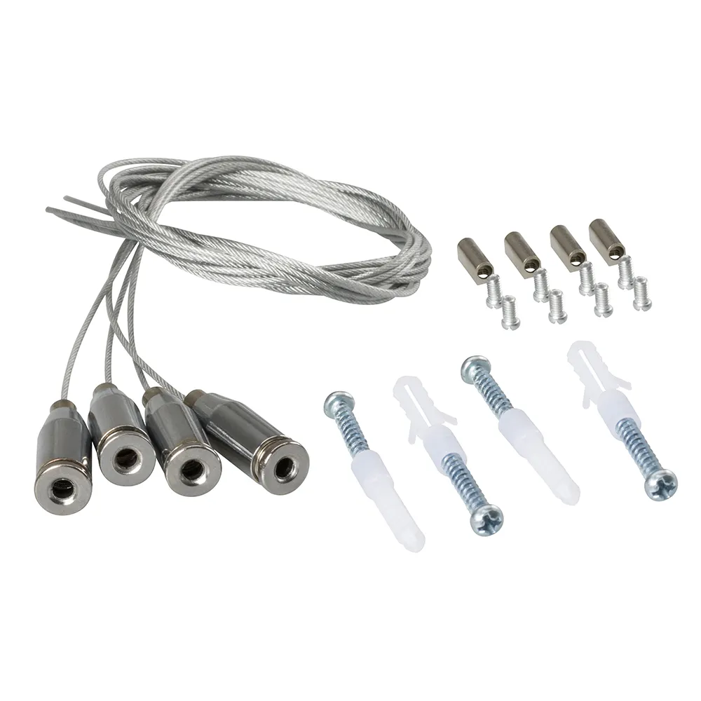 Набор для подвешивания панелей Ф600мм. В комплекте 4 тросика с держателями, винты для крепления. Длина троса 1 метр. Максимальная нагрузка 60 кг.