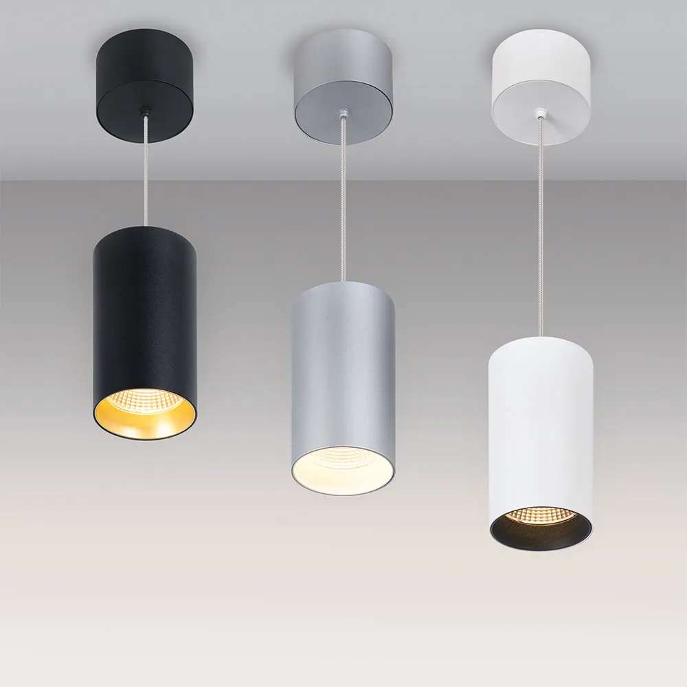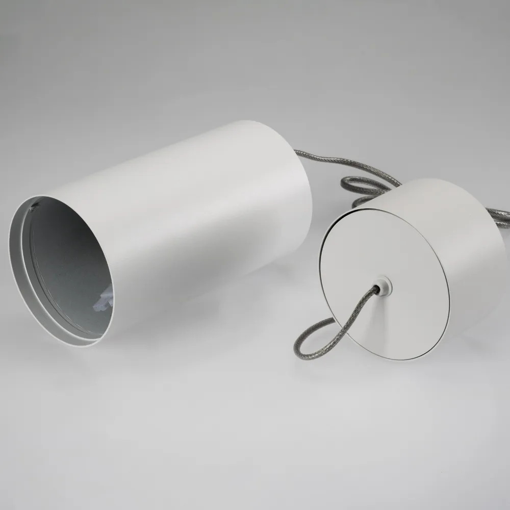 Корпус подвесной с драйвером для светильника POLO (1 часть из 3). Материал корпуса белый алюминий. Размер Ø85x155мм, встроенный драйвер PRI:220-240VAC, SEC:DC 500mA 23-36V 15Вт.