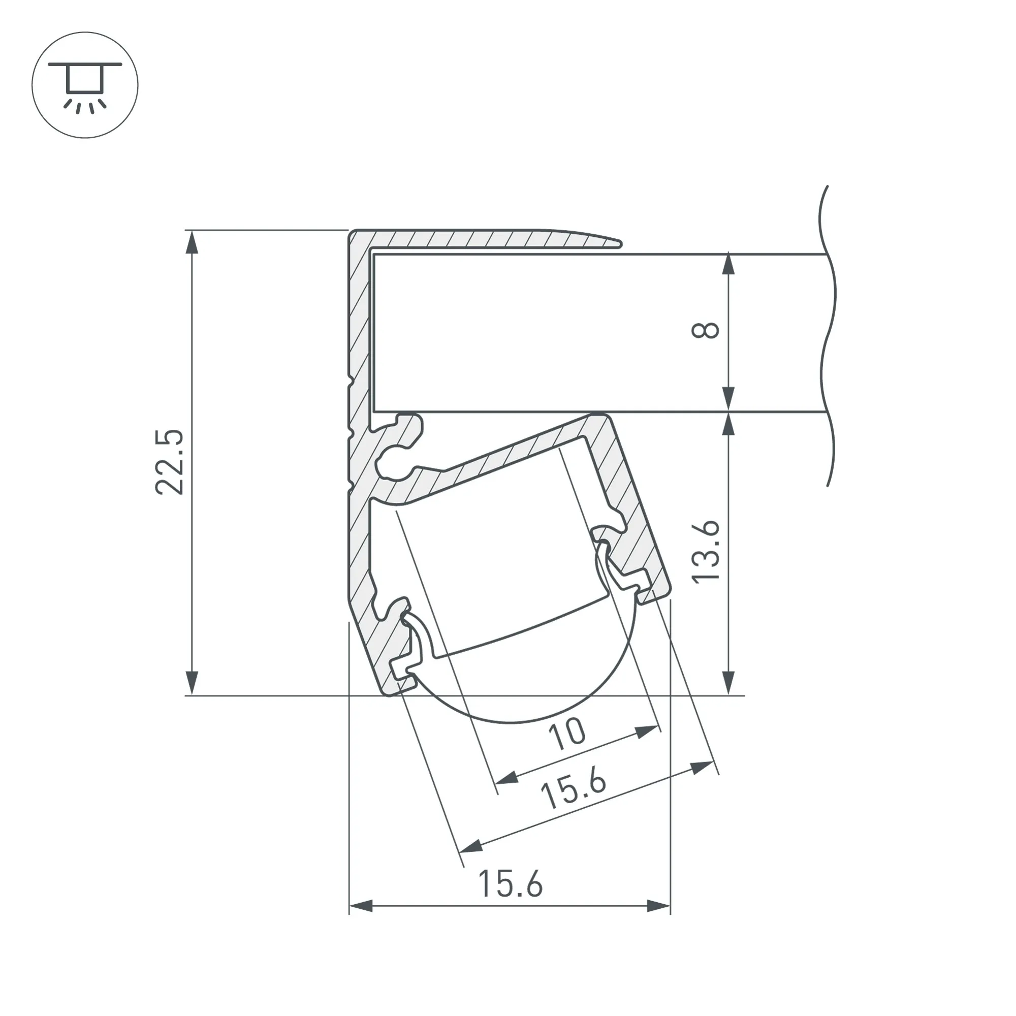 Алюминиевый анодированный профиль для подсветки стекла 8 мм. Габаритные размеры (L×W×H): 2000x15,6x22,5 мм. Ширина площадки для ленты 10 мм. Заглушки и другие аксессуары приобретаются отдельно. Цена за 1 метр.