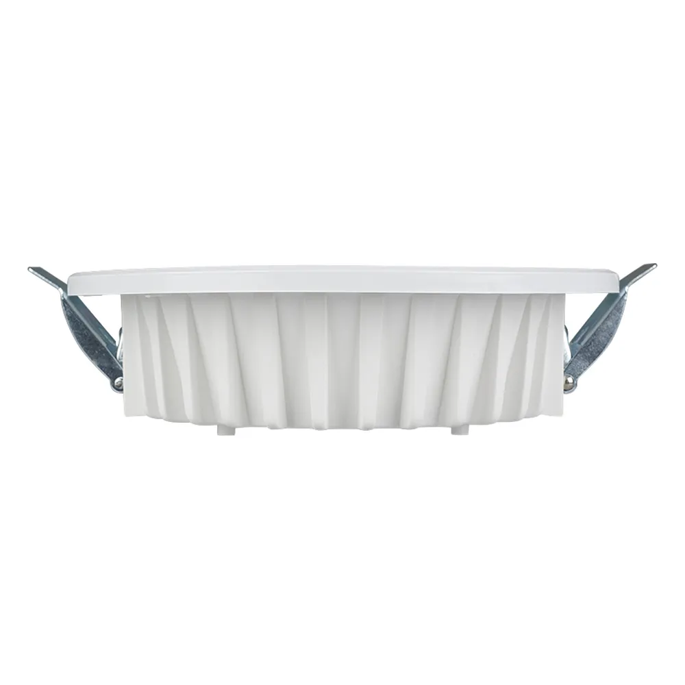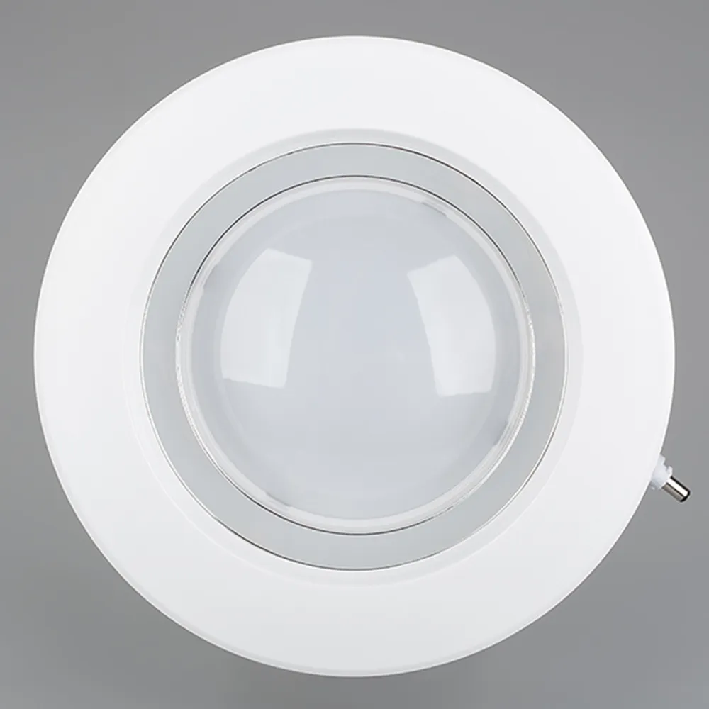 Даунлайт, угол 90° / 18Вт/ БЕЛЫЙ 6000K / LED 2835 38шт / 1810 лм / CRI>80. Белый корпус, алюминий, опрессованный в термопласт. Питание AC 100-240V (драйвер в к-те 280-300mA 80V). Габариты: (d)190х(h)75 мм, врезное отверстие 165 мм.