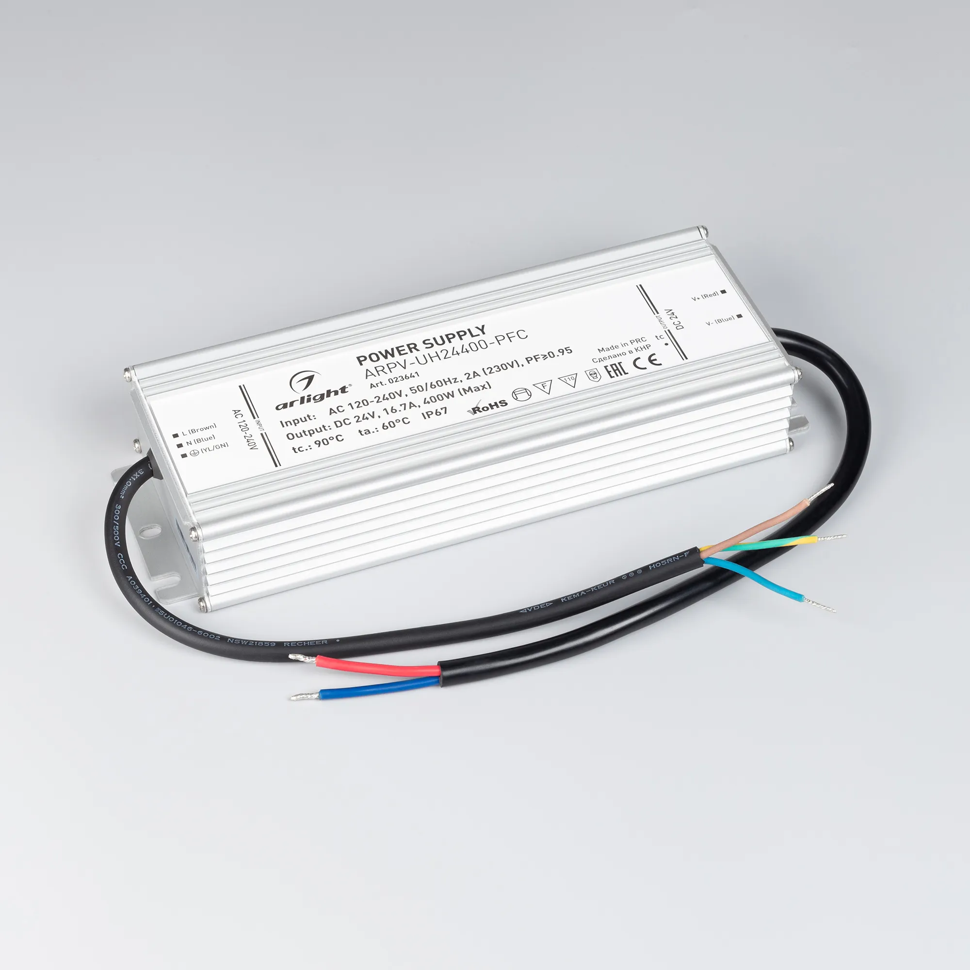 В магазине Арлед Маркет Вы можете купить "Блок питания ARPV-UH24400-PFC (24V, 16.7A, 400W) (Arlight, IP67 Металл, 7 лет)"