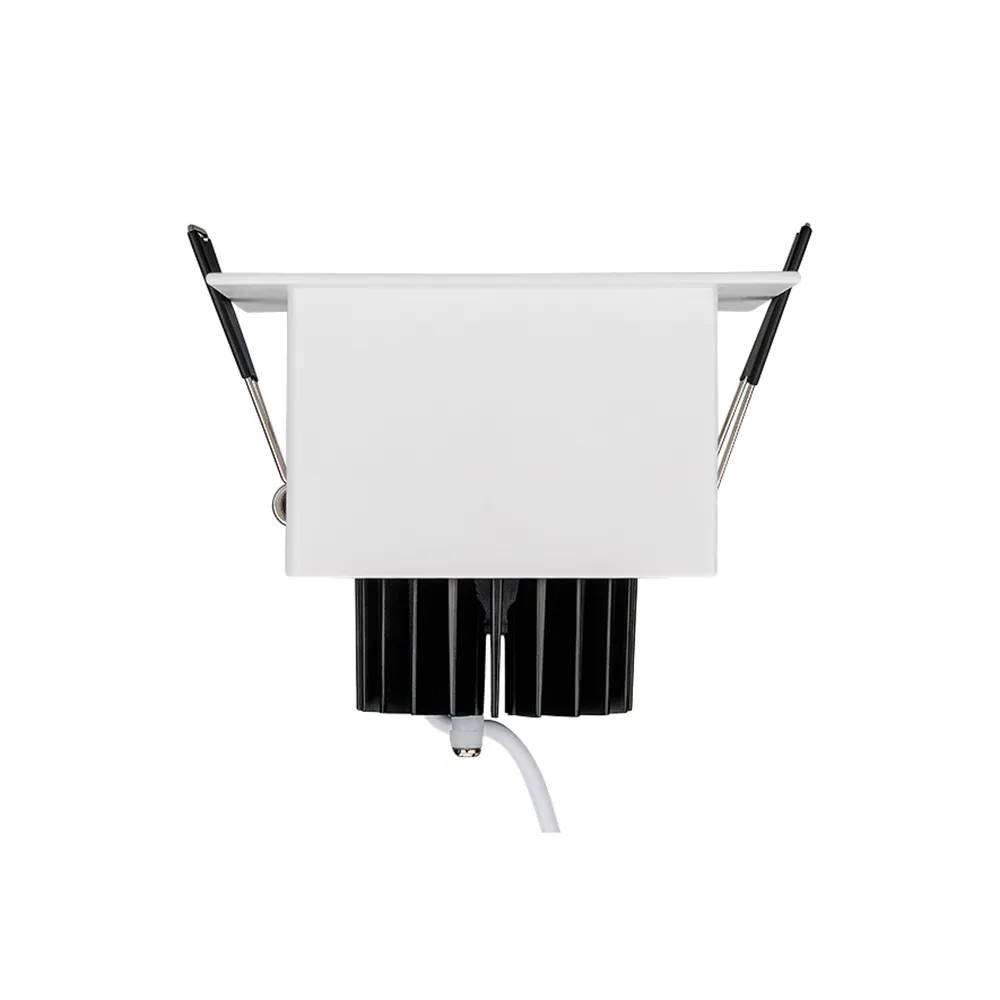 Встраиваемый карданный светильник. Угол 38° / 9Вт / ДНЕВНОЙ БЕЛЫЙ 4000K / 680лм, CRI>80. Корпус из белого алюминия с черными вставками. Питание AC180-240V, 9Вт, в комплекте драйвер 200mA 30-45V. Размеры LxWxH: 102х102x85мм, отверстие для установки 85x85мм.