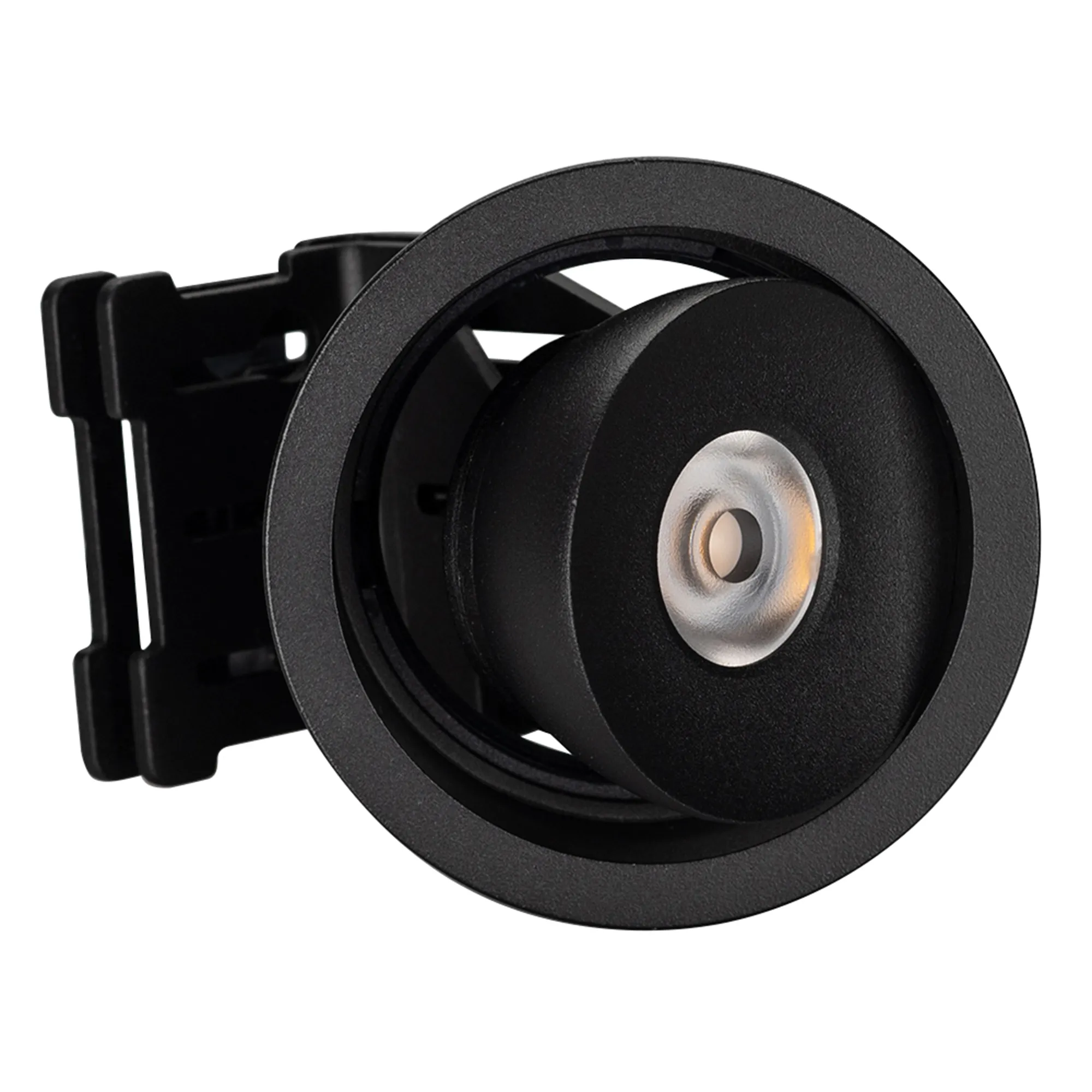 Встраиваемый поворотный светильник для потолка. Мощность 9W, цвет ТЕПЛЫЙ 3000K, св.поток 630лм, угол 45°, RA>90. Корпус черный. Питание AC230V. Размеры DxH Ø78x90мм. Установка в отверстие Ø70мм. Драйвер в комплекте (30-45V, 220mA).