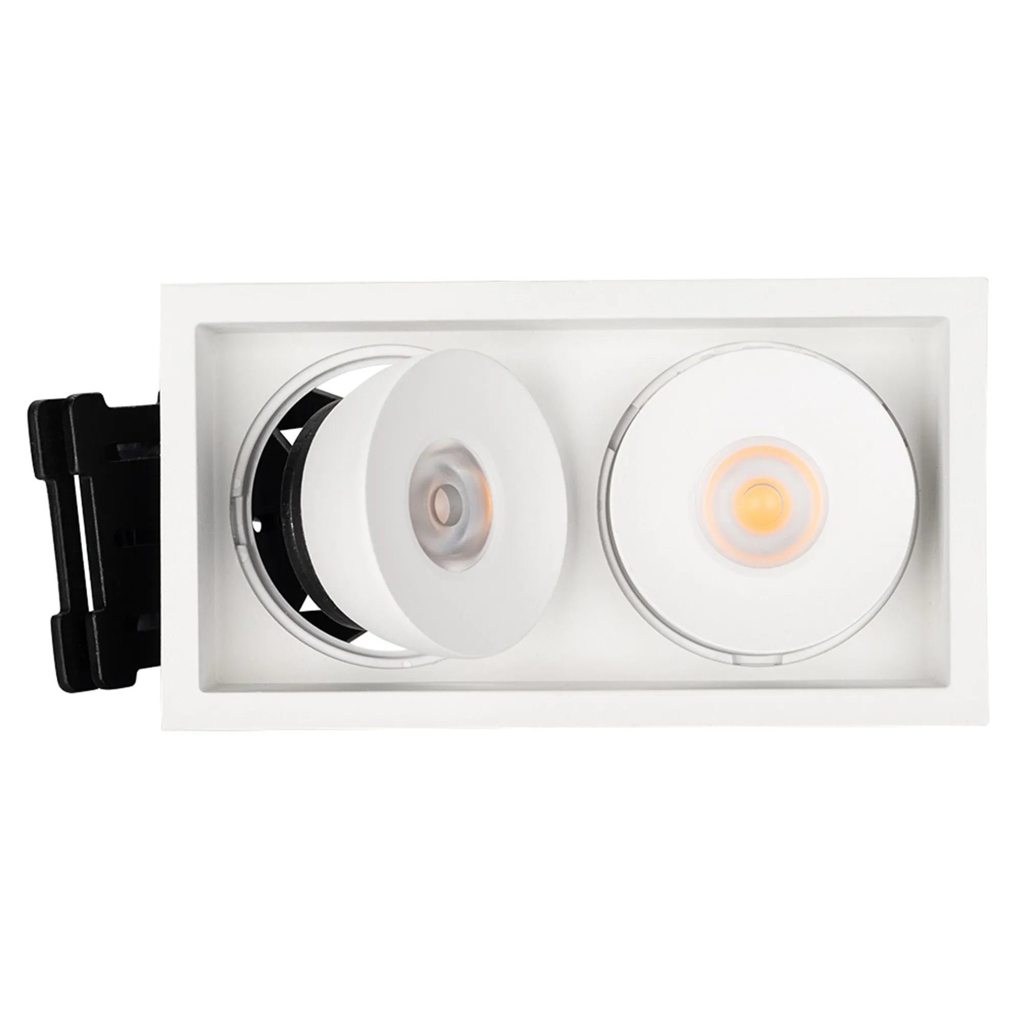 Встраиваемый поворотный светильник для потолка. Мощность 2x9W, цвет ДНЕВНОЙ 4000K, св.поток 1260лм, угол 45°, RA>90. Корпус прямоугольный белый. Питание AC180-240V. Размеры LxWxH 148x80x90мм. Установка в отверстие 140x70мм. Драйвер в комплекте 2 шт (30-45V, 220mA).
