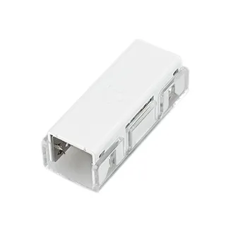 Герметичный двусторонний коннектор питания для гибкого неона MOONLIGHT, сечение 12х13мм, цвет белый. Подключение питания без пайки, IP54.