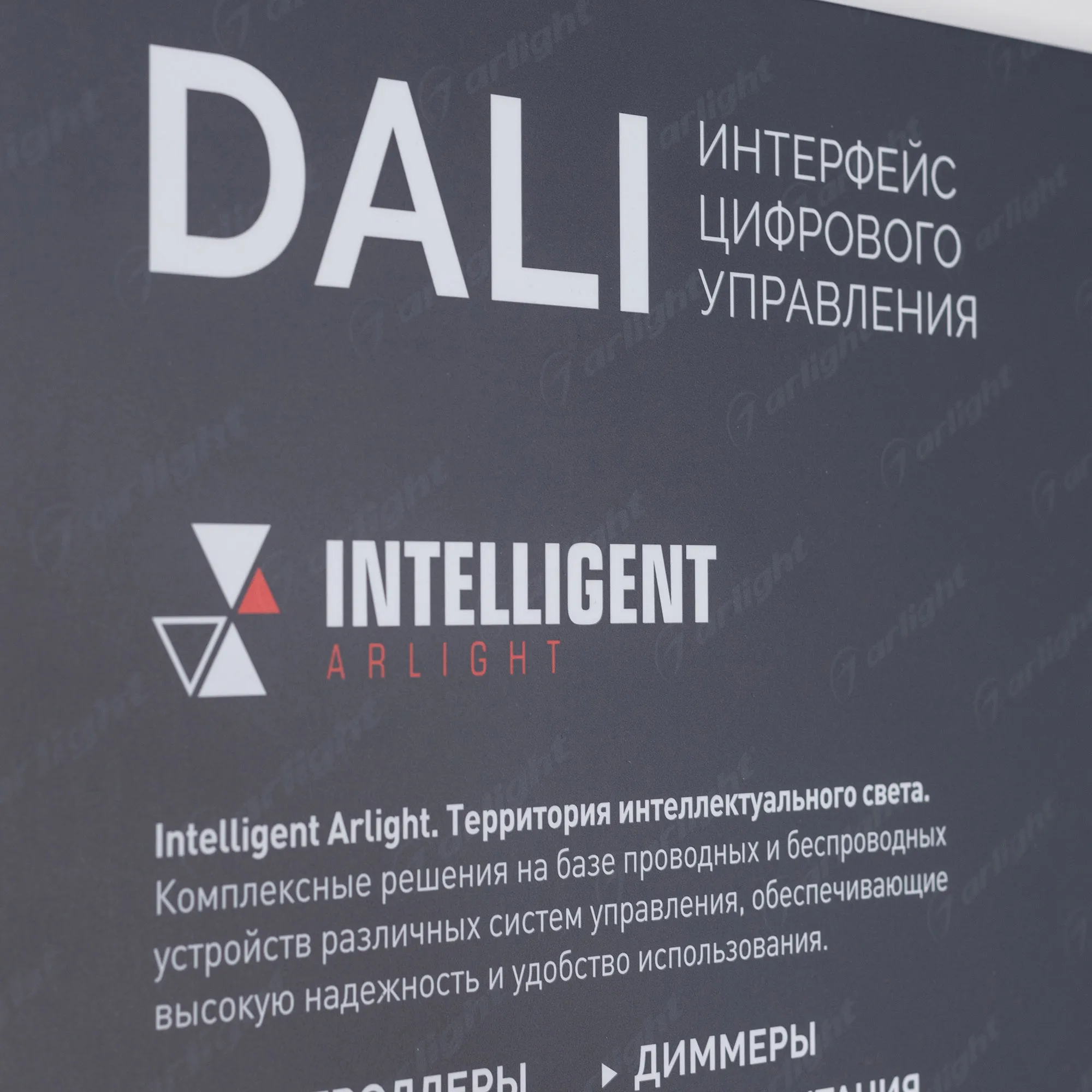 Наши специалисты знают все о продукции Arlight и с радостью помогут Вам выбрать комплектующие к товару "Стенд Системы Управления DALI 1760x600mm (DB 3мм, пленка, лого) (Arlight, -)", или другие товары из раздела "Управление светом".