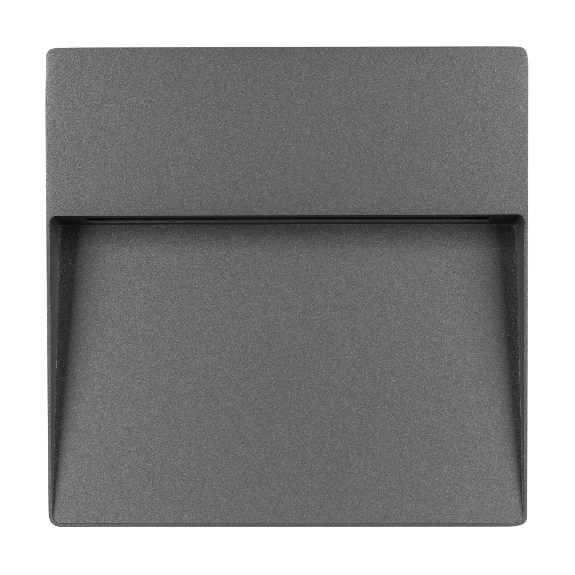 Светодиодный накладной квадратный светильник для стен, лестниц, 8Вт. Цвет ТЕПЛЫЙ БЕЛЫЙ 3000K, св.поток 300лм, CRI(Ra)>80, угол 60°, асимметричный свет. Размер 215x215x36мм. Влагозащищенный корпус IP65, алюминий серого цвета. Питание AC230V, 8Вт, встроенный драйвер.