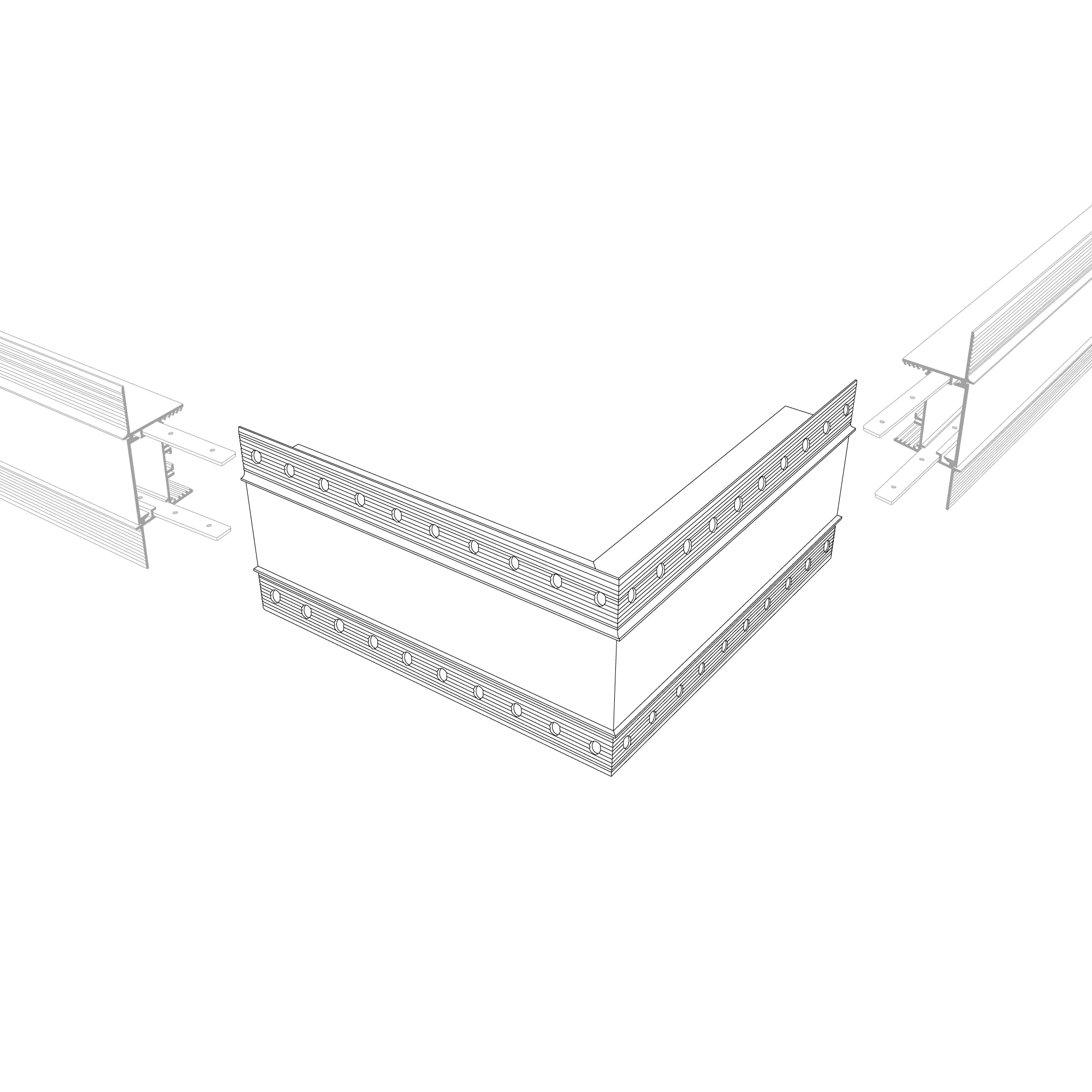 Угол в сборе, для профиля SL-LINIA45-FANTOM. Свечение наружу. В комплекте угол с экраном, соединители, винты, шестигранный ключ.