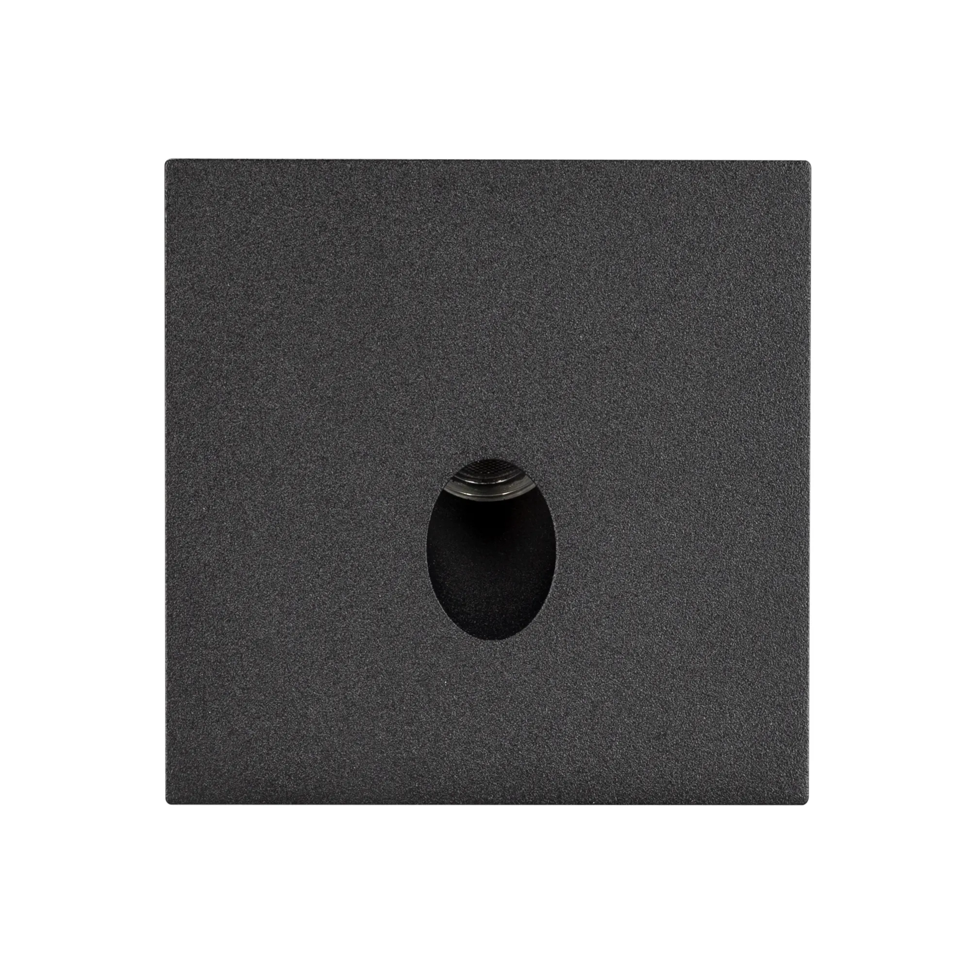 Светодиодный встраиваемый квадратный светильник для стен, лестниц, 3Вт. Цвет ТЕПЛЫЙ 3000К, световой поток 120лм, угол 30°, CRI>80. Влагозащищенный корпус IP65, чёрный алюминий. Питание AC230V, мощность 3Вт. Размеры LxWxH 70x70x97мм (закладная часть Ø62x95мм).
