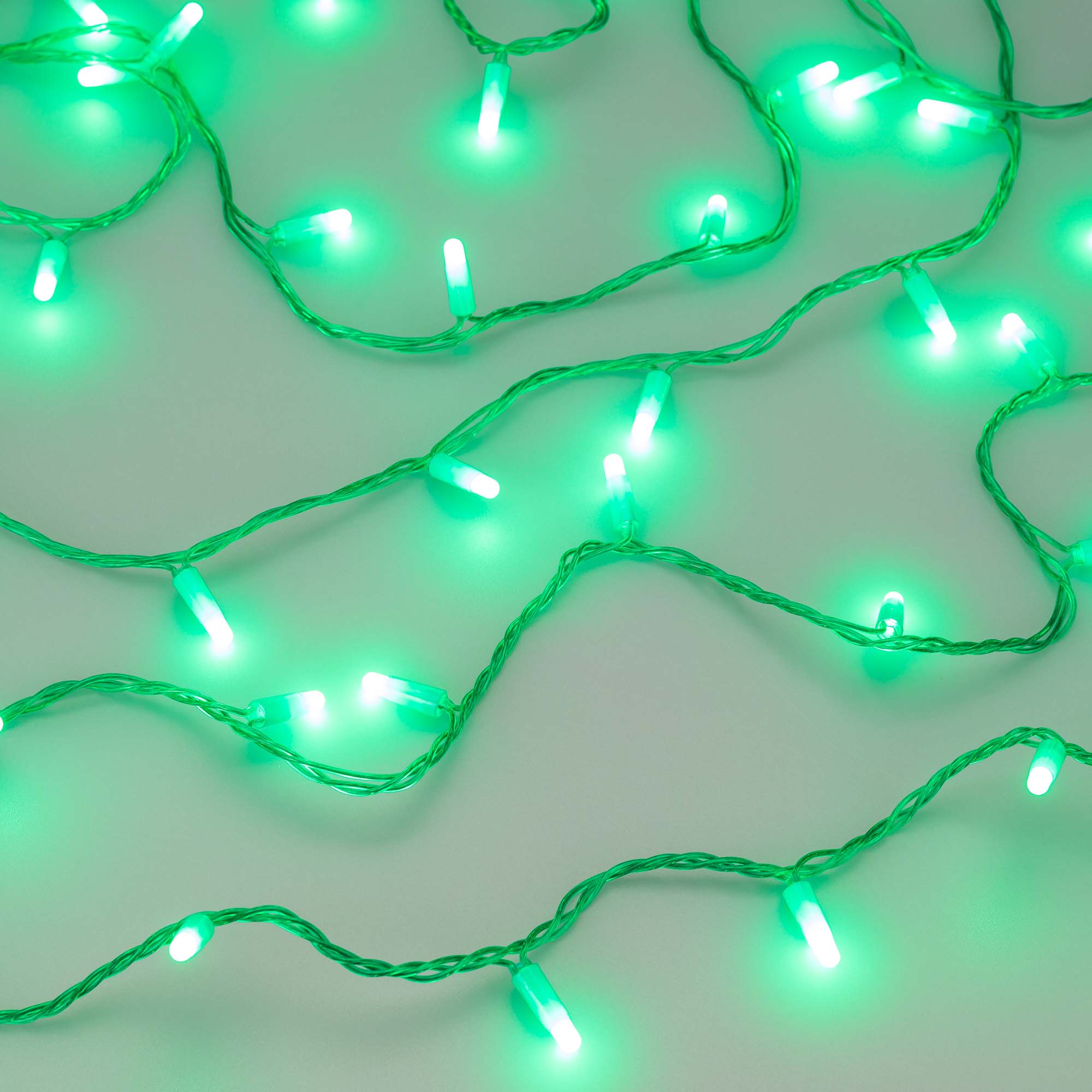 Светодиодная нить Classic. Размер 10000 мм. Цвет свечения ЗЕЛЕНЫЙ. 100 светодиодов размером 7 мм со статическим эффектом свечения с мягким световым рисунком (выпуклая молочно-белая линза). Провод зеленый, ПВХ. Питание 230 В, Мощность 7 Вт, защита IP65, применение в помещении и на улице под навесом. Аксессуары для подключения и управления приобретаются отдельно.