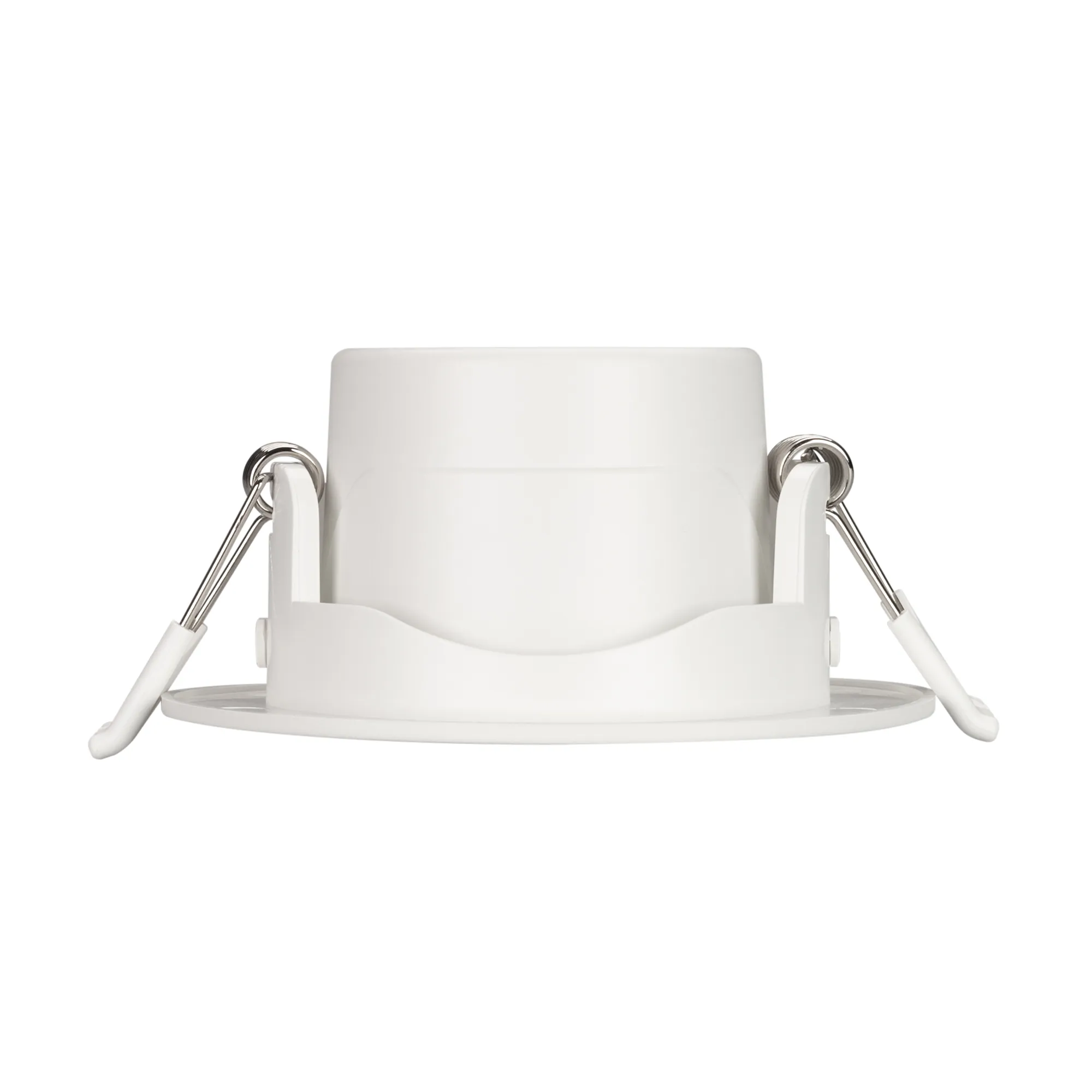 Встраиваемый поворотный светильник "даунлайт". Мощность 6.5 Вт, св. поток 550 лм, 85 лм/Вт, теплый 3000 K, CRI>80, UGR<19, угол 36°, напряжение питания 230 В. Белый круглый корпус из теплопроводящего полиамида, степень защиты IP20, угол поворота оси 30°. Размер: диаметр 90 мм, высота 43 мм. Монтаж встраиваемый, установочное отверстие диаметр 68-80 мм. Пульсация <2%.