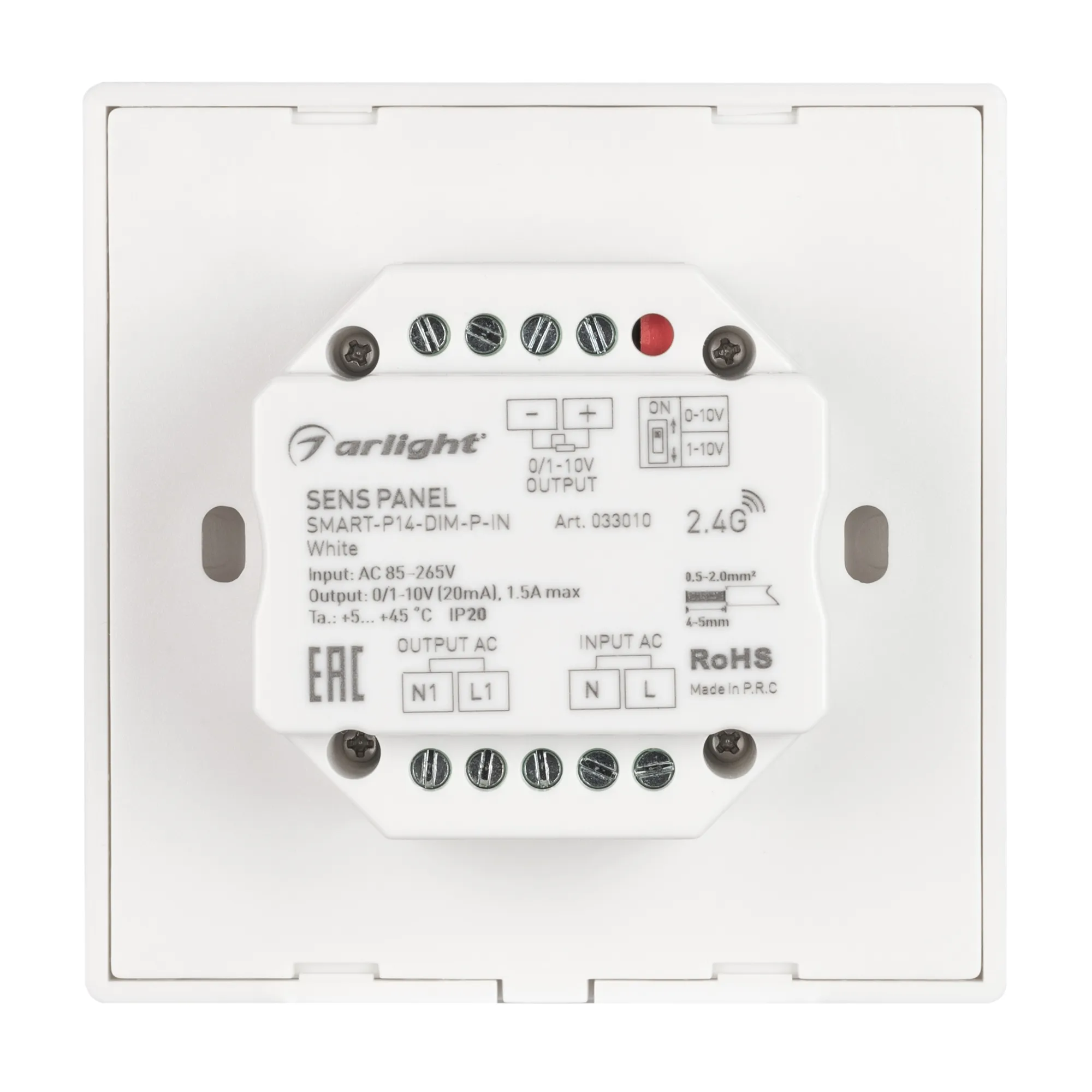 Панель SMART-P14-DIM-P-IN White (230V, 1.5A, 0/1-10V, Rotary, 2.4G) (Arlight, IP20 Пластик, 5 лет)