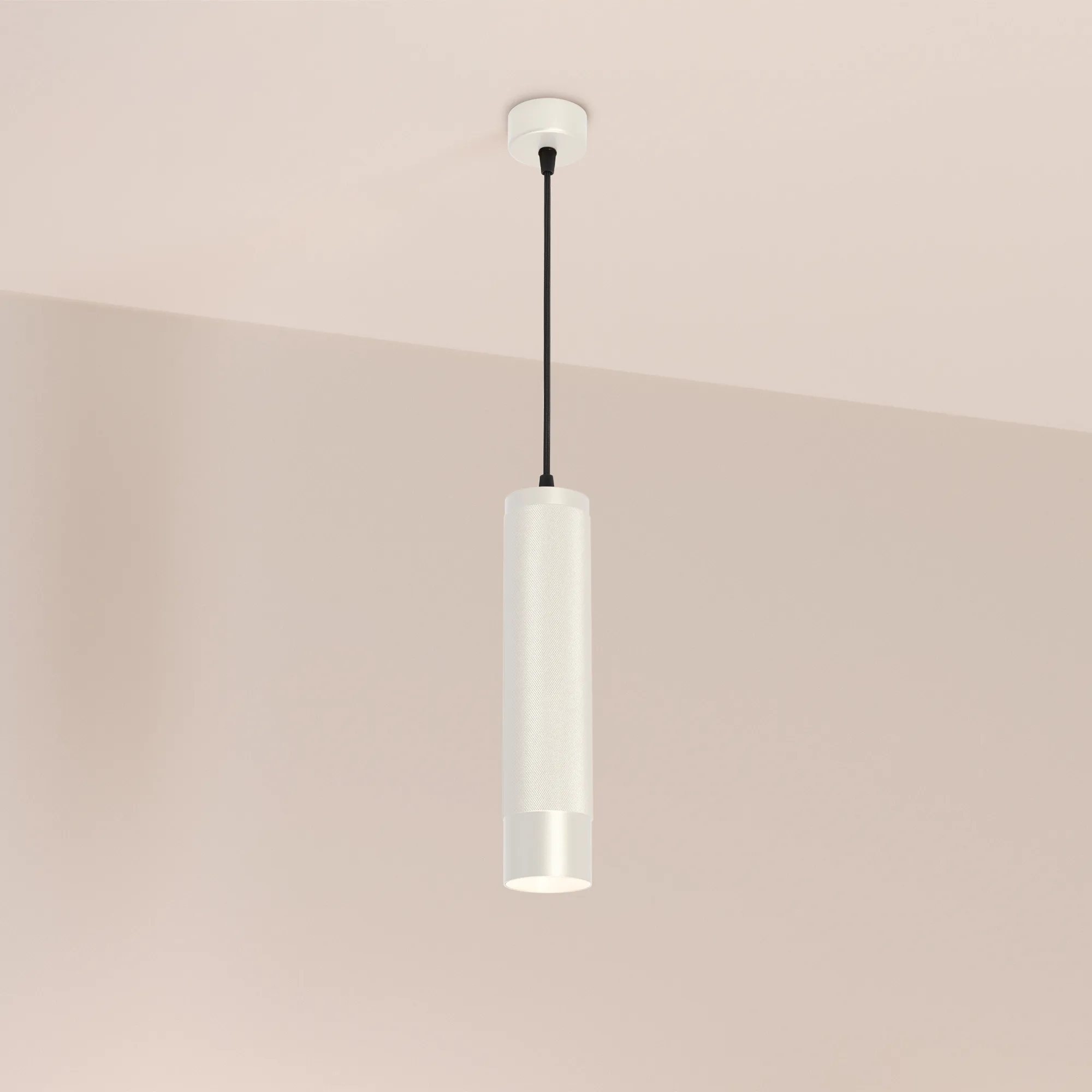 Подвесной светильник. Мощность 13 Вт, св. поток 732 лм, 57 лм/Вт, дневной 4000 K, CRI>90, угол 50°, напряжение питания 230 В. Белый круглый корпус из алюминия, рефлектор PC, степень защиты IP20. Размер: диаметр 70 мм, высота 300 мм, длина подвеса 1500 мм, размер чаши: диаметр 65 мм, высота 30 мм. Монтаж подвесной. Драйвер 24-42 В, 300 мА, пульсация <1%.