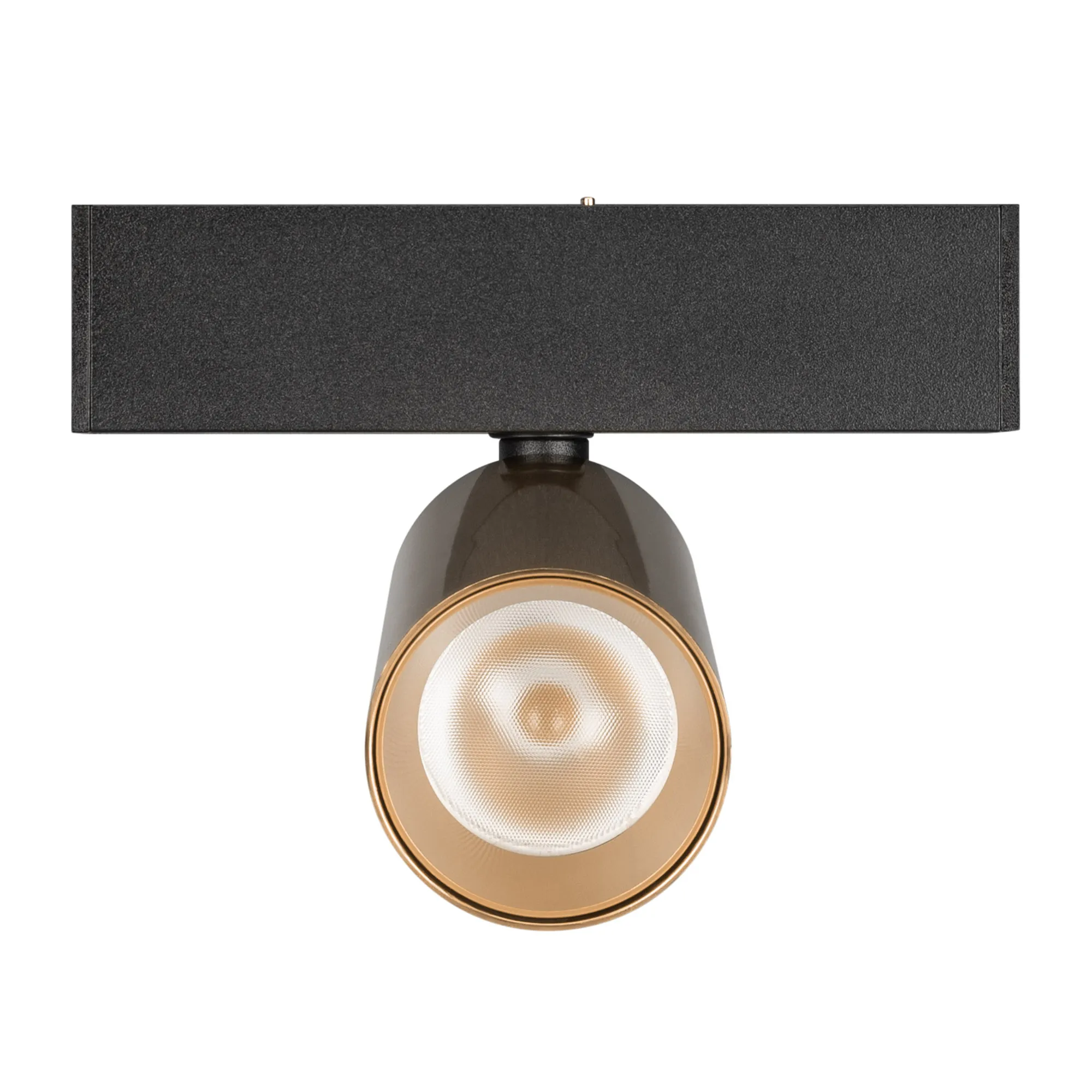 Под заказ от 100 шт. Светильник поворотный для магнитных треков шириной 25 мм, 9 Вт. Цвет свечения ТЕПЛЫЙ 3000K, световой поток 630 лм, угол 30°, CRI>90. Корпус прямоугольный, металл, цвет черный-золотой, IP20. Размеры LxWxH 100x20x120 мм. Входное напряжение DC24V, мощность 9 Вт. Драйвер DС24V/AC230V поставляется отдельно.Диаметр светоизлучающего модуля 35 мм. Диммируется только с 026407, 027633.