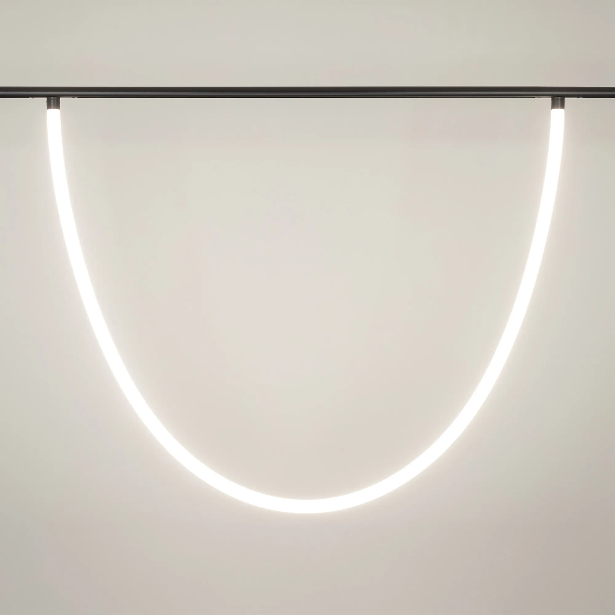 Светильник гибкий для магнитных треков серии FLEX. Мощность 70 Вт, св. поток 4700 лм, 67 лм/Вт, дневной 4000 K, CRI>90, угол 360°, напряжение питания 48 В. Матовый белый фигурный корпус из силикона. Размер: диаметр 30 мм, длина 5000 мм. Монтаж на магнитный трек FLEX. Чтобы подключить светильник к треку необходимо использовать адаптер 034068.