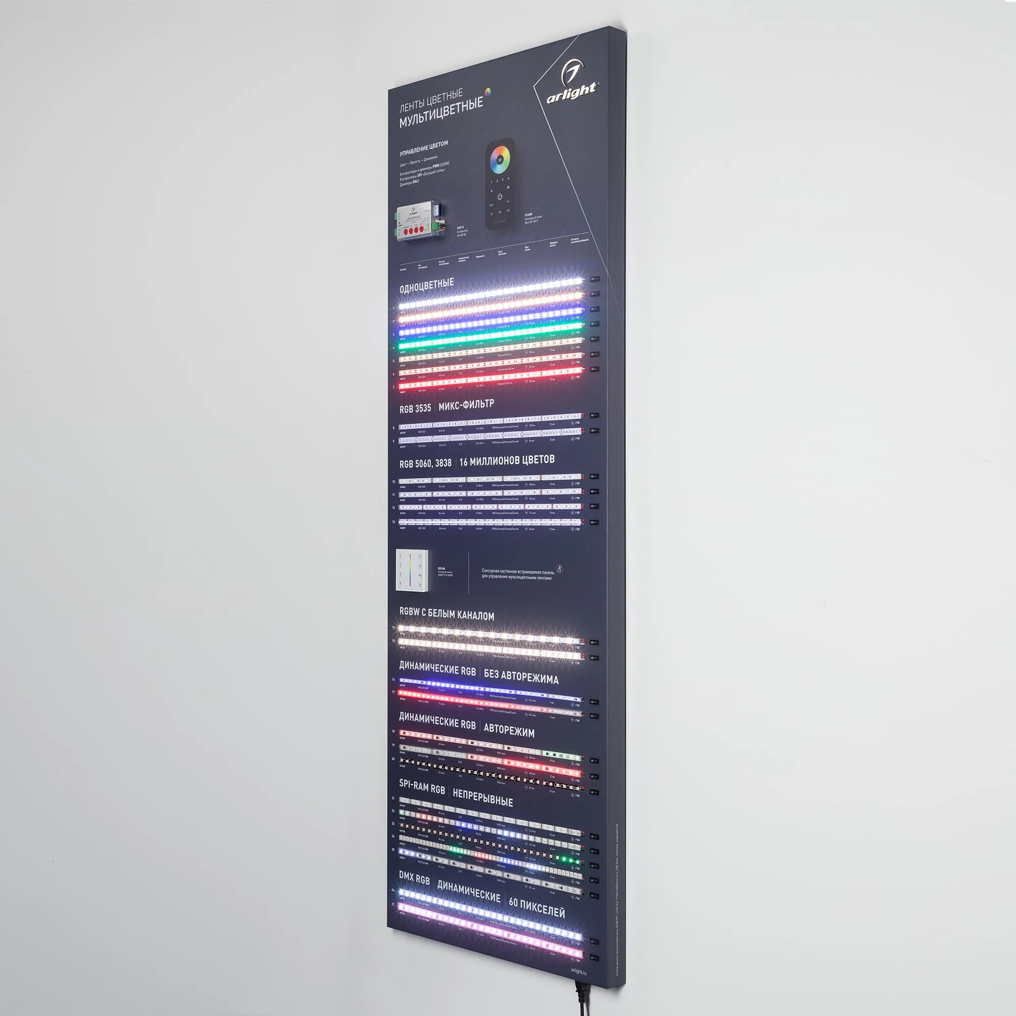 В магазине Мельковский Свет Вы можете купить "Стенд Ленты Мультицветные RGB RT-LUX-E4-1760x600mm (v.2, DB 3мм, пленка, подсветка) (Arlight, -)"