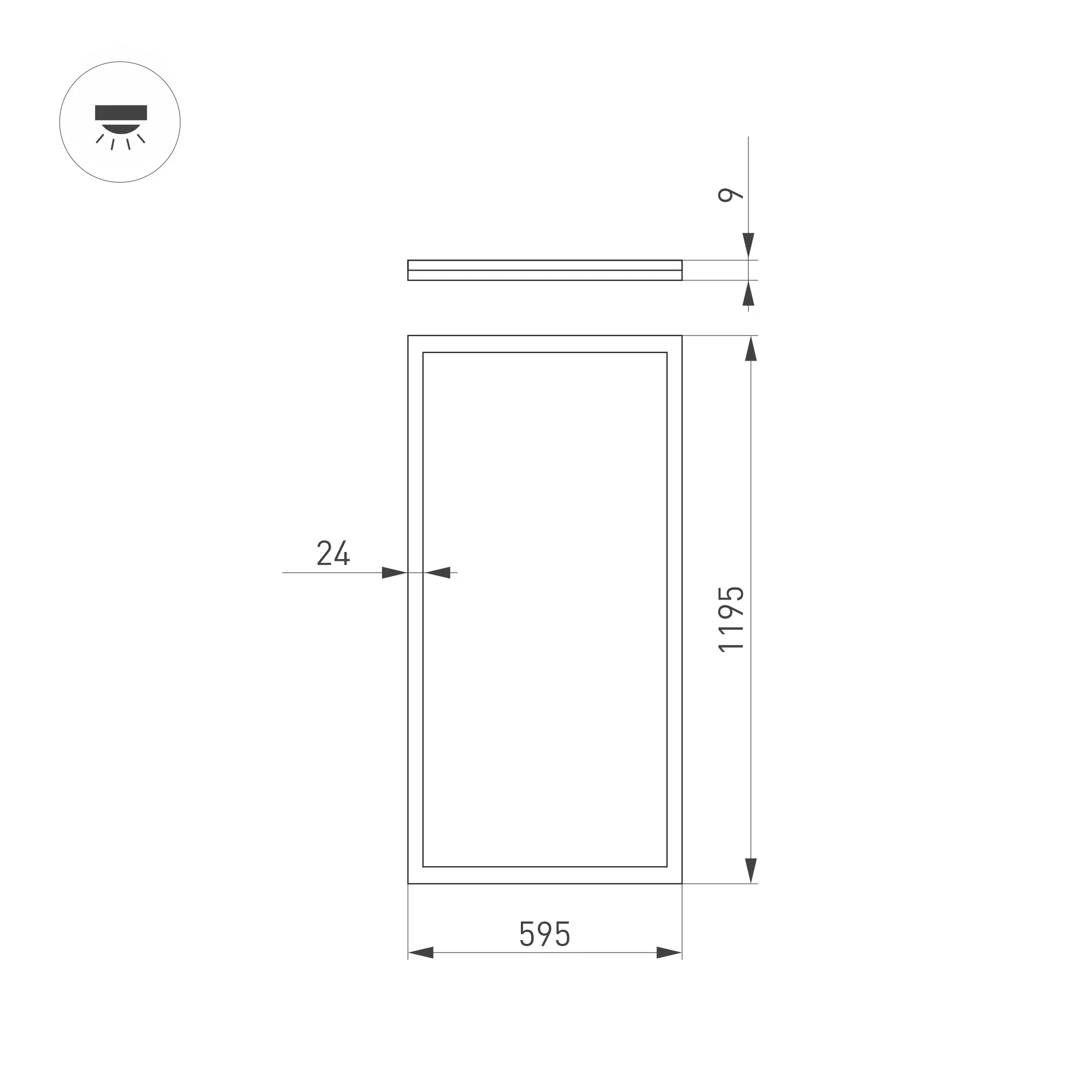 Поставка под заказ от 100 шт. Светодиодная панель с торцевой засветкой (edge-lit). Мощность 60 Вт, св. поток 6000 лм, 100 лм/Вт, белый 6000-6500 K, CRI>80, угол 120°, напряжение питания 230 В. Белый квадратный корпус из алюминия, экран PS, LGP PMMA, степень защиты IP20. Размер: длина 1195 мм, ширина 595 мм, высота 9 мм. Монтаж встраиваемый, установочное отверстие длина 1175 мм, ширина 575 мм. Драйвер 27-42 В, 1500 мА, пульсация <1%.