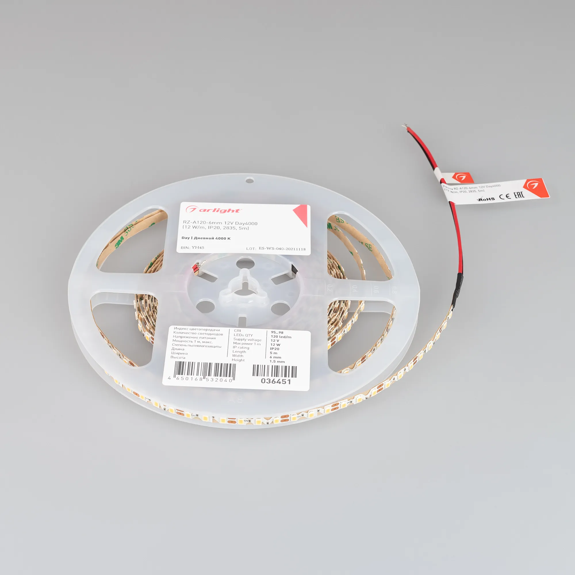 Лента светодиодная RZ-A120-6mm 12V Day4000 (12 W/m, IP20, 2835, 5m) (Arlight, 12 Вт/м, IP20)