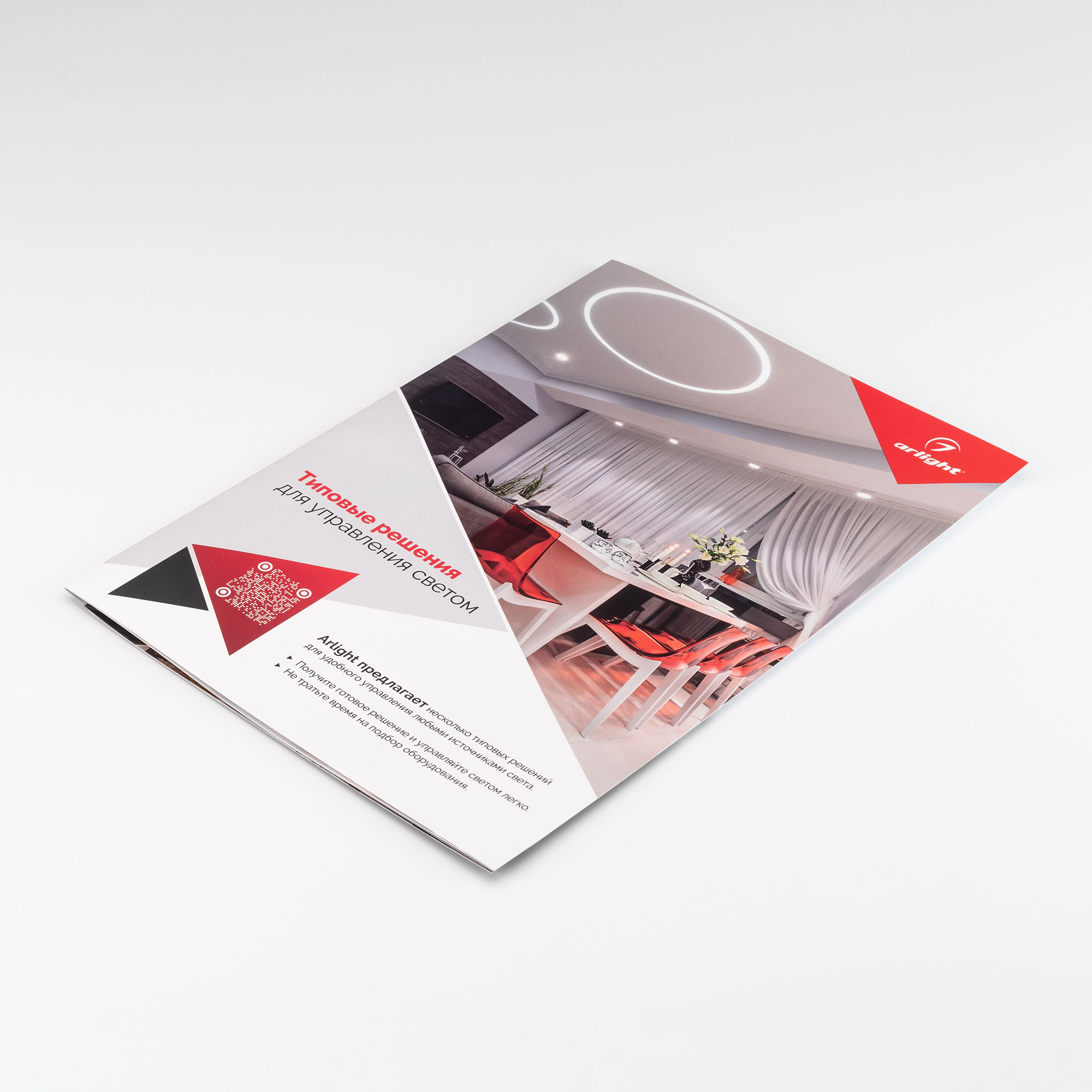 Буклет "Типовые решения для управления светом", формат А4, 2 скрепки. Обложка: 4 полосы, 4+4, лам. 1+0, 200г мат, биговка обложки. Блок: 4 полосы, 4+4, 150 г мат.