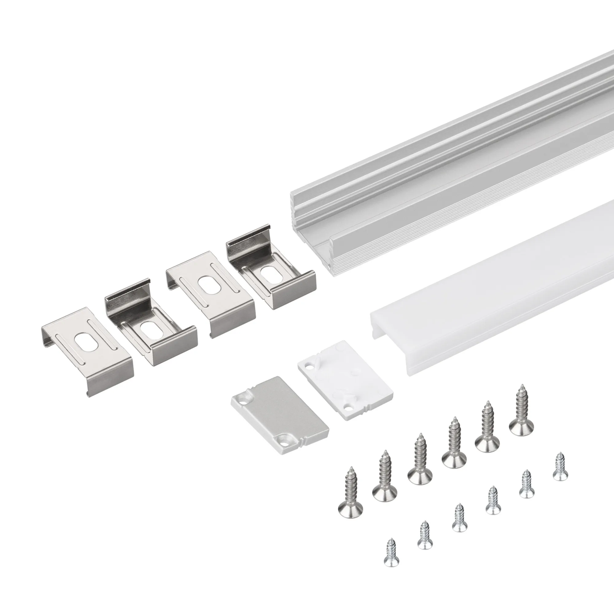 Цена за комплект: профиль - 2 м, экран - 2 м, глухая заглушка - 2 шт., держатель - 4 шт.