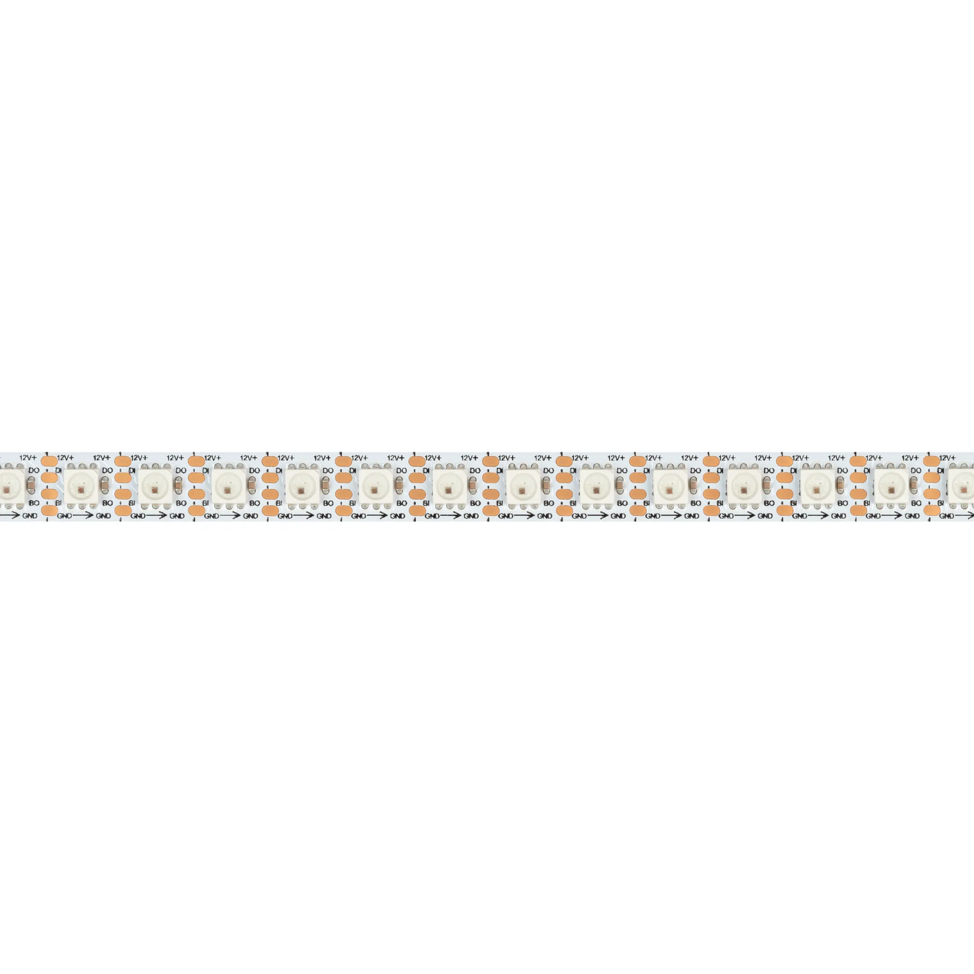 Светодиодная лента SPI серии B96 с микросхемой WS2815B. Светодиоды SMD 5060, 96 шт/м, 96 pixels на 1 м (480 pixels на 5 м), 1 pixel = 1 светодиод, белая плата шириной 10 мм, скотч 3М. Цвет RGB, угол 120°. Питание 12 В, мощность 13 Вт/м (65 Вт на 5 м). Размеры 5000x10x2 мм. Мин. отрезок 10.3 мм, 1 светодиод. Цена за 1 м.