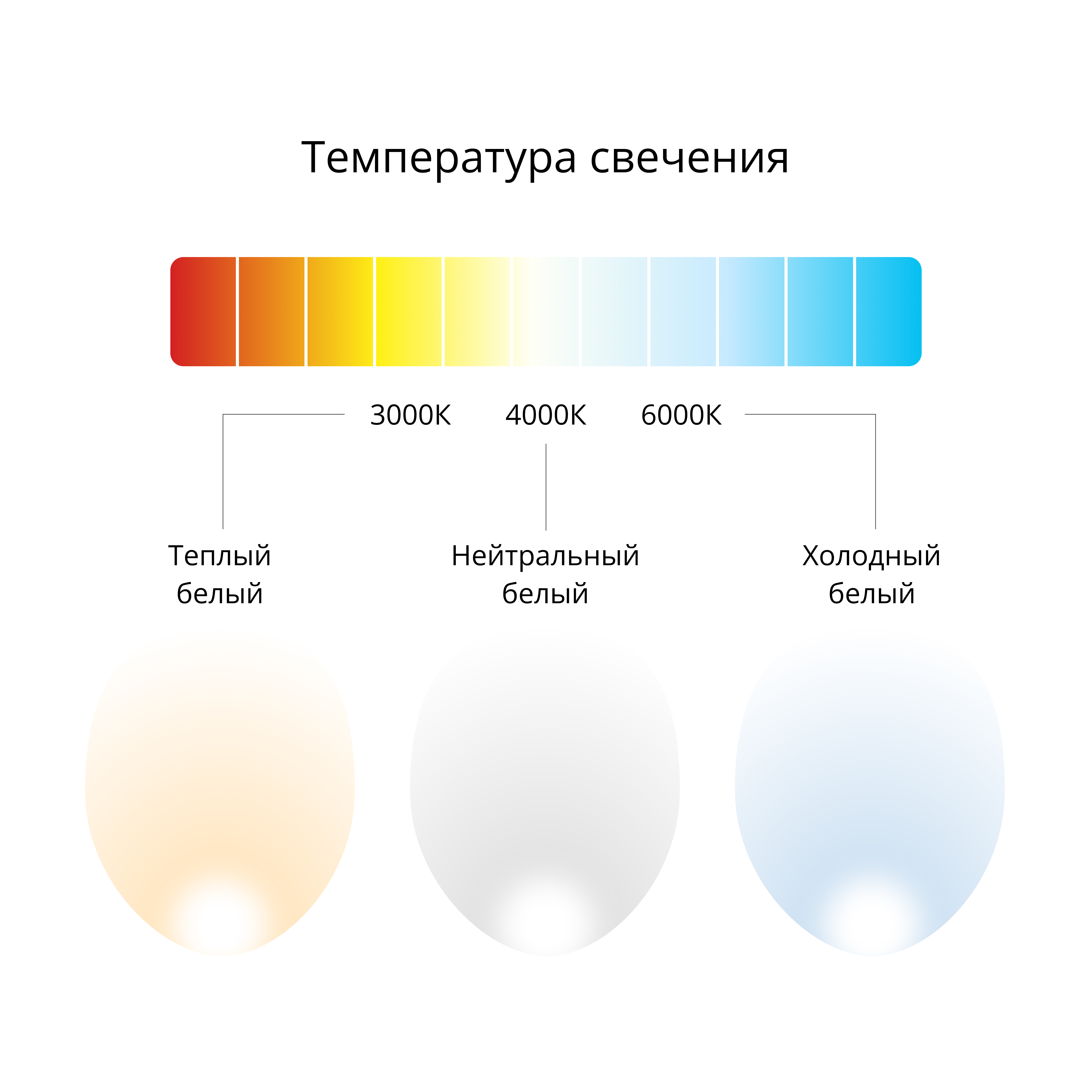 - Цветовая температура от 3000К до 6000К. Стандартное исполнение - 4000К.