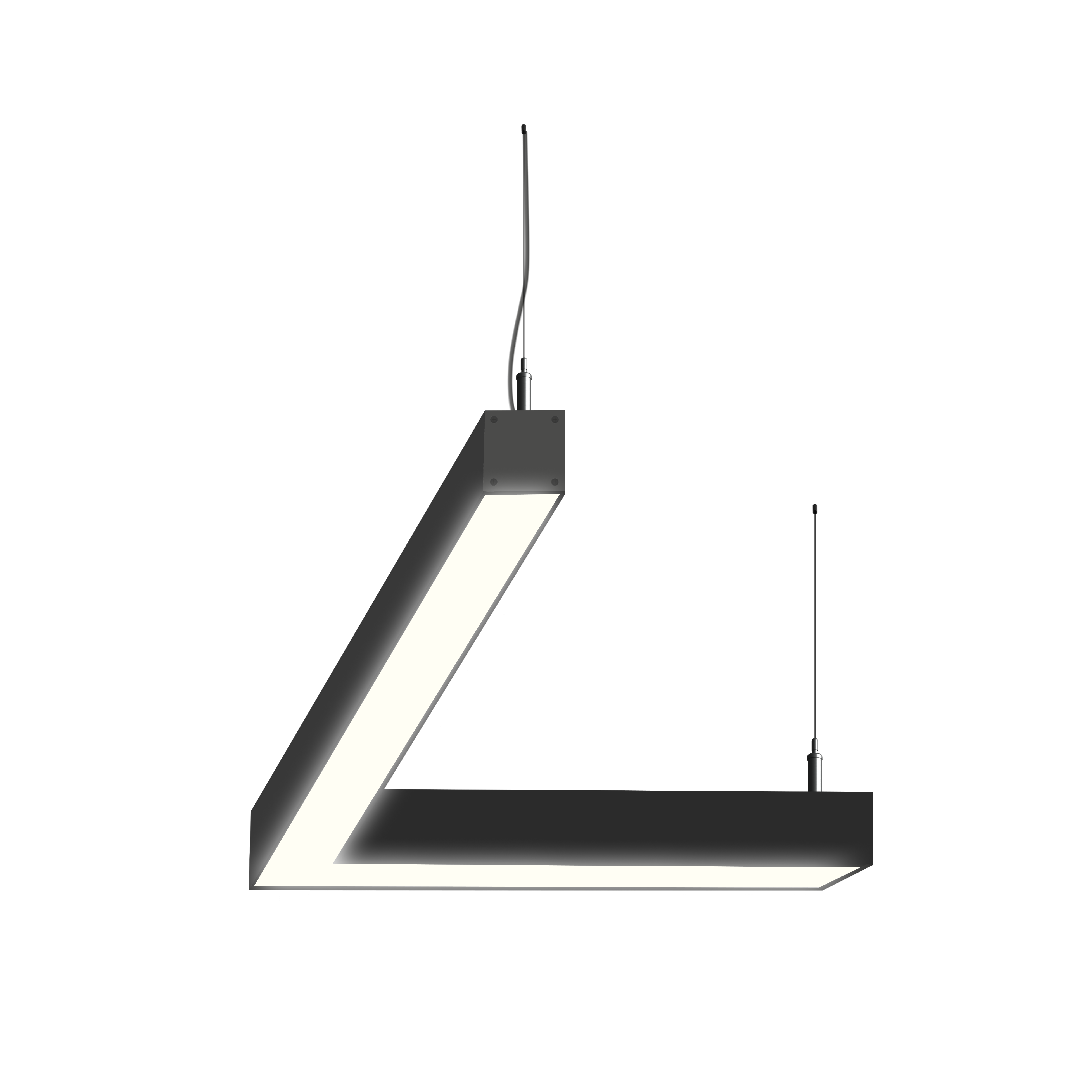 Светодиодный фигурный светильник MS-CORN L-образный 45гр. размер профиля 50х50мм длиной 750х750мм мощностью 60W. Светильник собирается в алюминиевом корпусе с матовым рассеивателем, который дает равномерную засветку по всей площади.