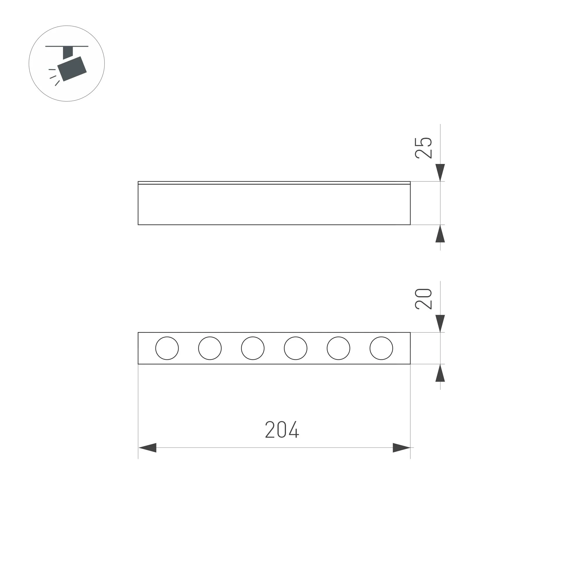 Светильник для магнитных треков шириной 25 мм, с управлением DALI. Мощность 6Вт. Цвет свечения ДНЕВНОЙ 4000K, световой поток 400лм, угол 30°, CRI>90. Корпус прямоугольный, металл, цвет черный, IP20. Размеры LxWxH 204x20x25 мм. Входное напряжение DC24V, мощность 6 Вт. Драйвер AC230V/DС24V поставляется отдельно.