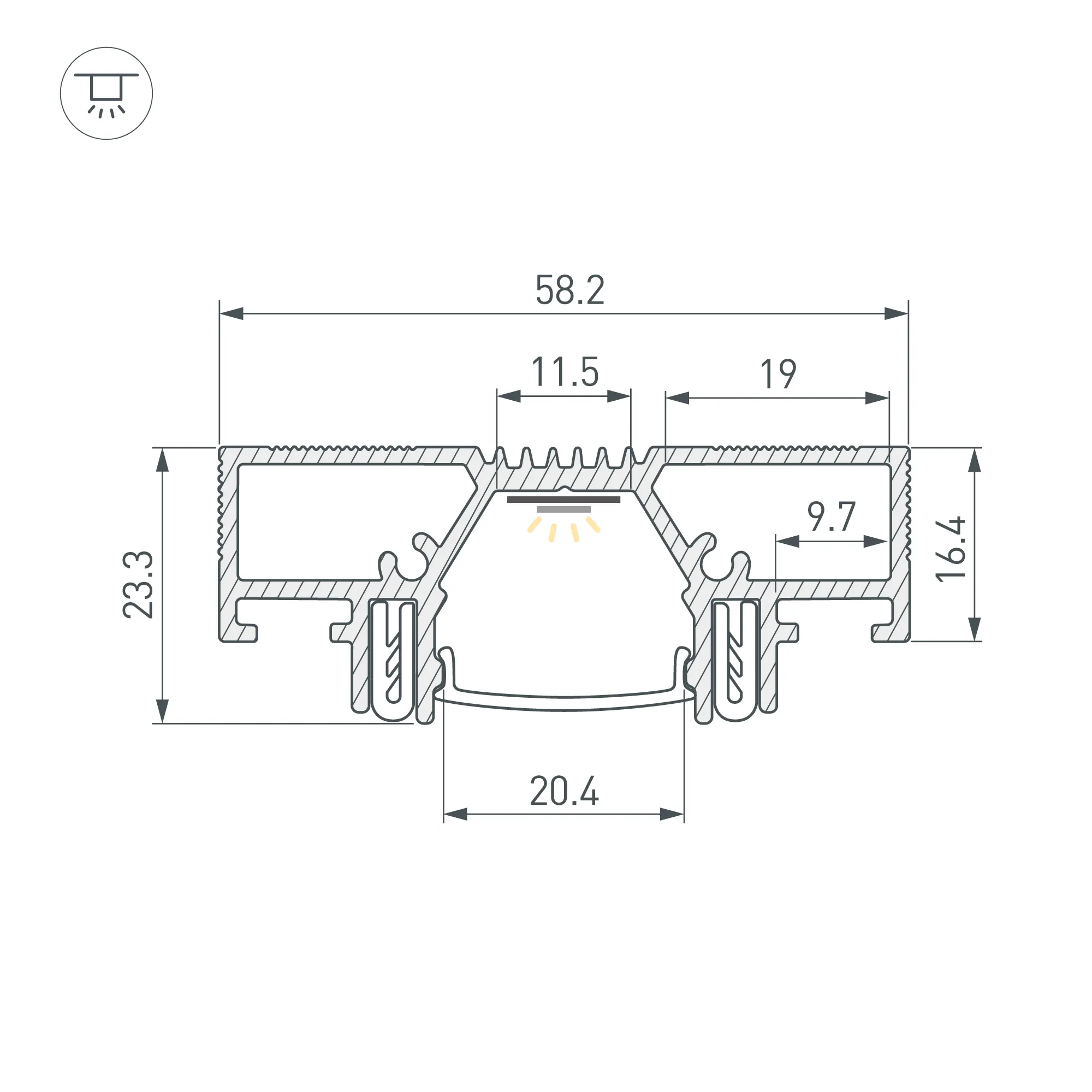 Алюминиевый профиль SLOTT for ARLIGHT для монтажа натяжных потолков (центральная световая линия). Самонесущая конструкция для крепления натяжного потолка с пазом для установки светодиодной ленты. Для создания световых линий в натяжных потолках. Возможность установки до 3х лент. Демпферная система крепления натяжного потолка. Цвет - черный RAL9005 (порошковая окраска). Ширина площадки для ленты 11,5 мм. Есть две дополнительные площадки по 10 мм. Длина 2000 мм. Цена за 1 м.