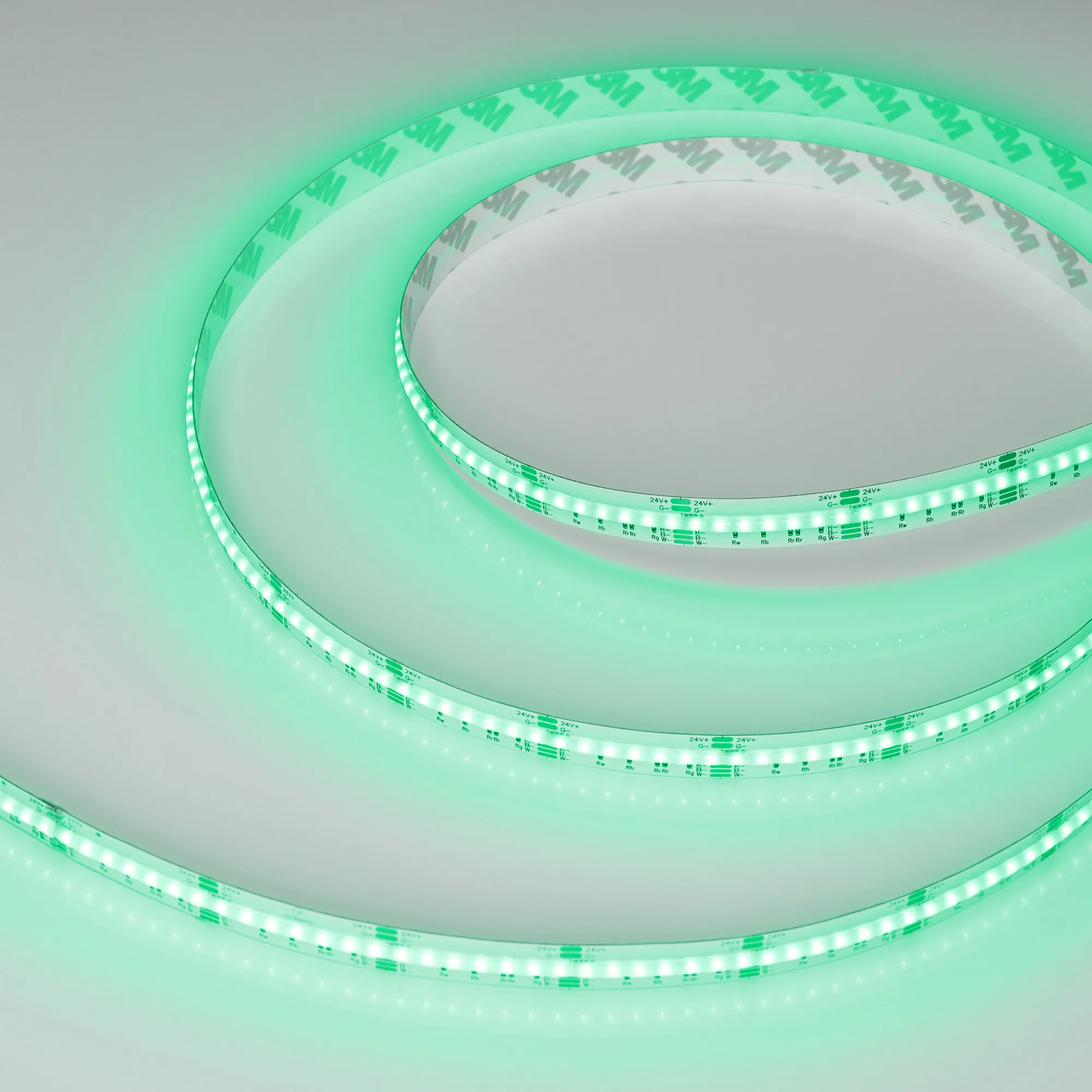 Светодиодная лента сплошного свечения COB серии X840. Светодиоды CSP, 840 шт/м, белая плата шириной 12 мм, скотч 3M. Цвет RGB + ДНЕВНОЙ 4000K, индекс цветопередачи CRI>90, угол 160° Питание 24 В, мощность 17.2 Вт/м (86 Вт на 5 м). Размеры 5000x12x1.9мм. Мин. отрезок 33.33 мм. Цена за 1 м. Обязательна установка на профиль.