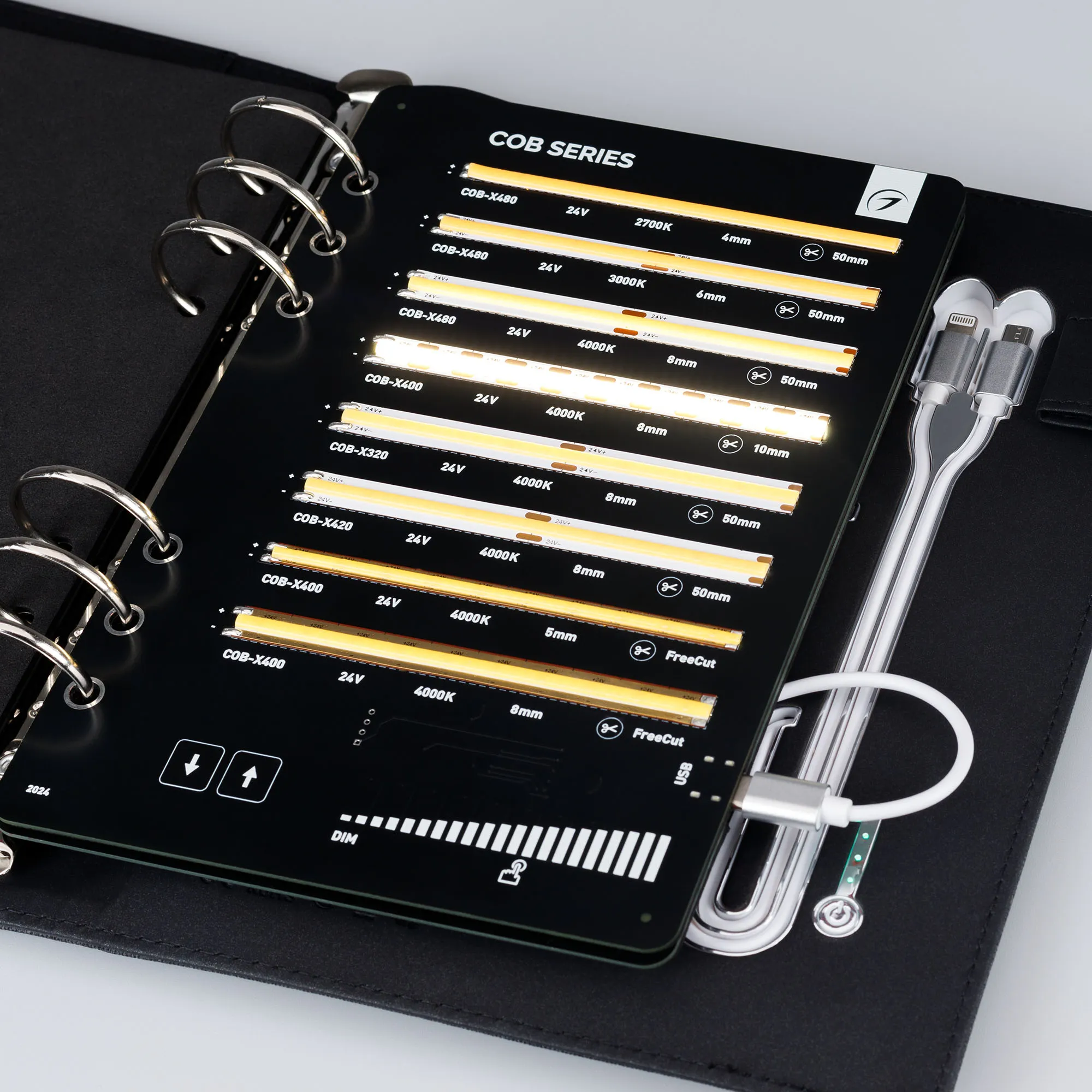 В кейс входят 45 образцов моделей лент COB, RT, MICROLED, MIX, SPI.