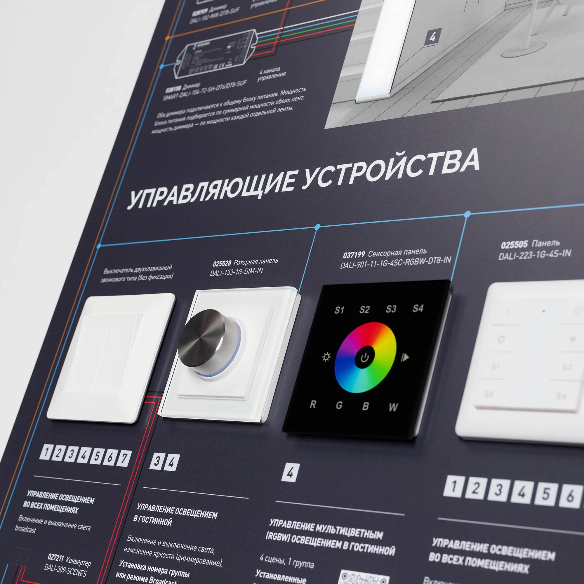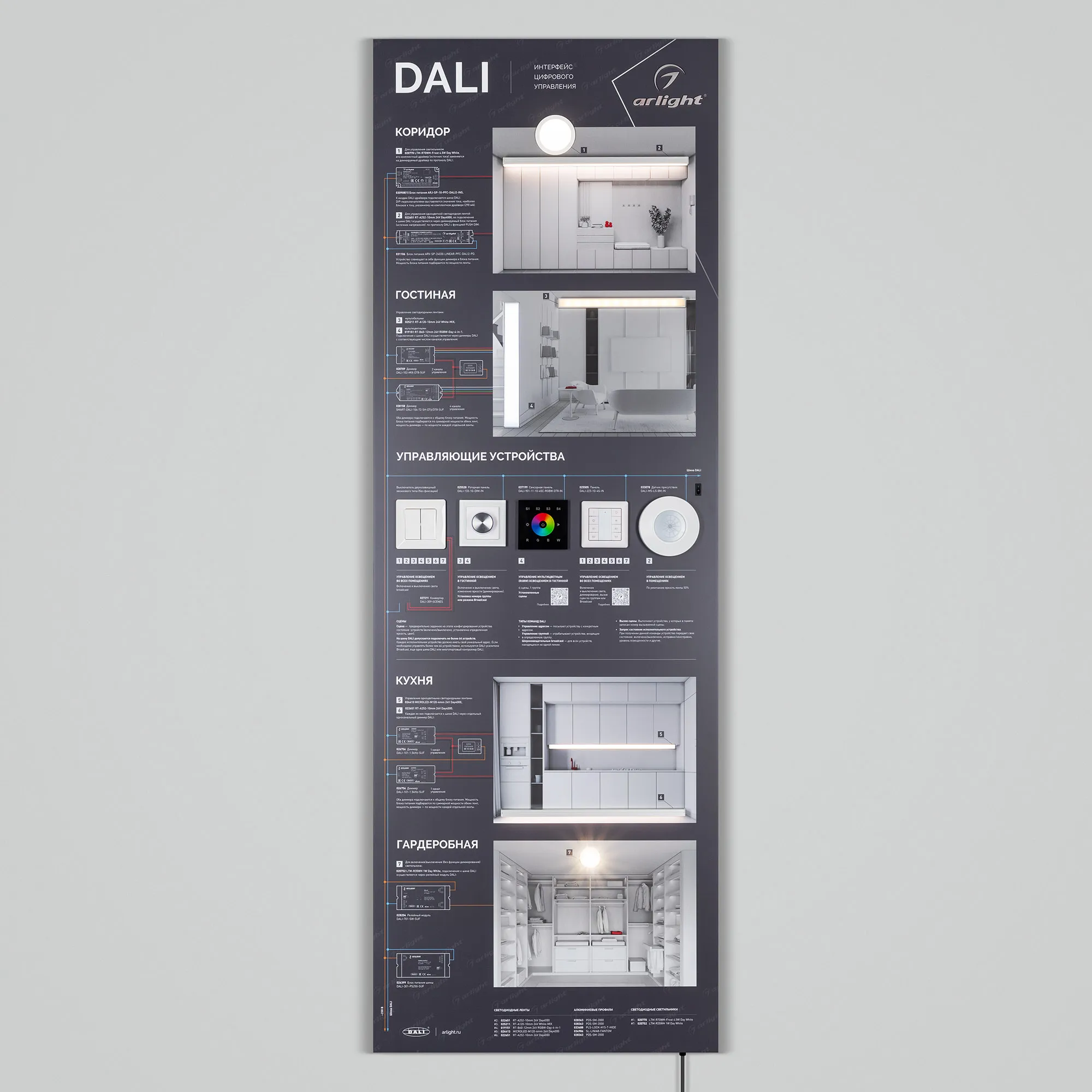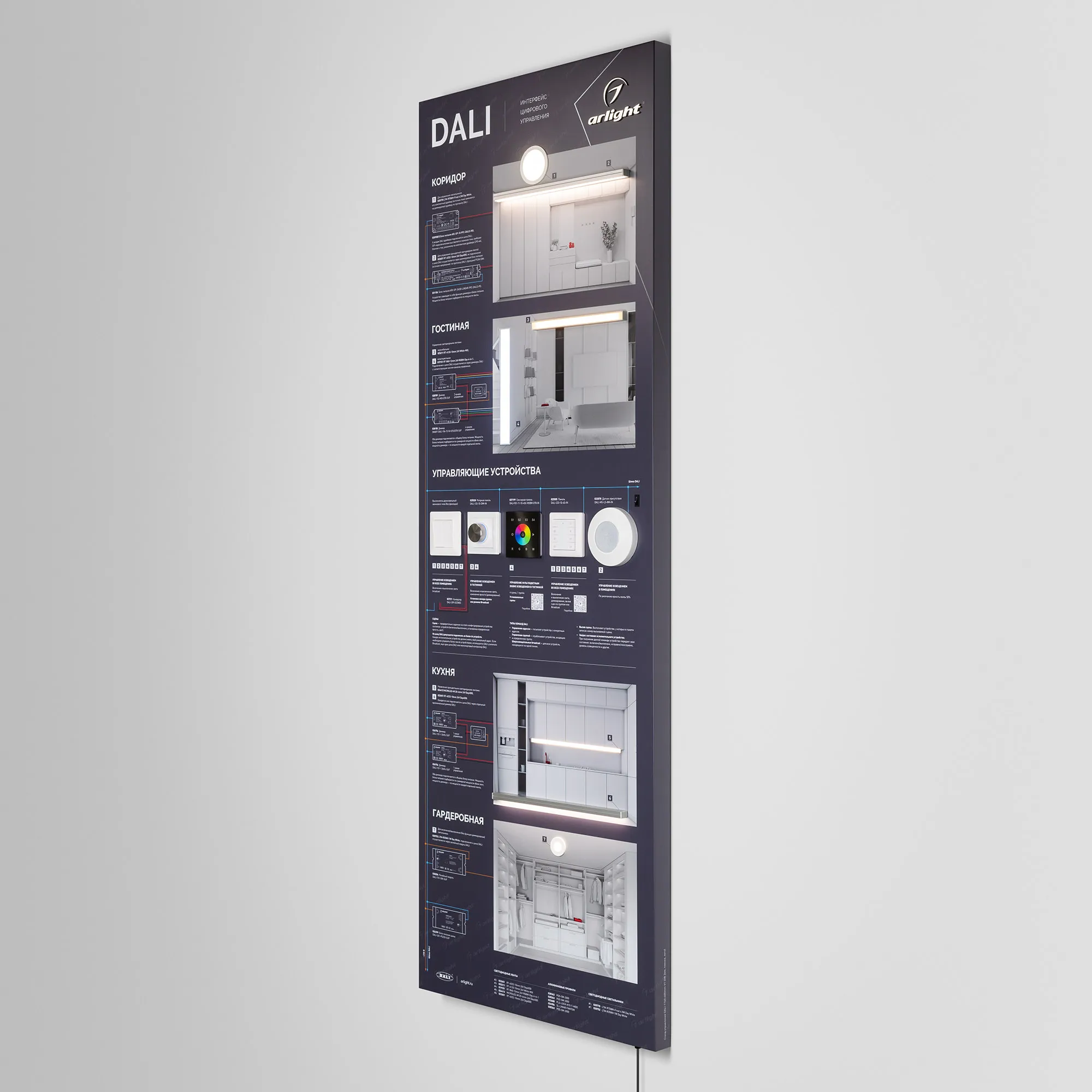 В магазине Мельковский Свет Вы можете купить "Стенд Управления DALI-1760х600mm-V1 (DB 3мм, пленка, лого) (Arlight, -)"