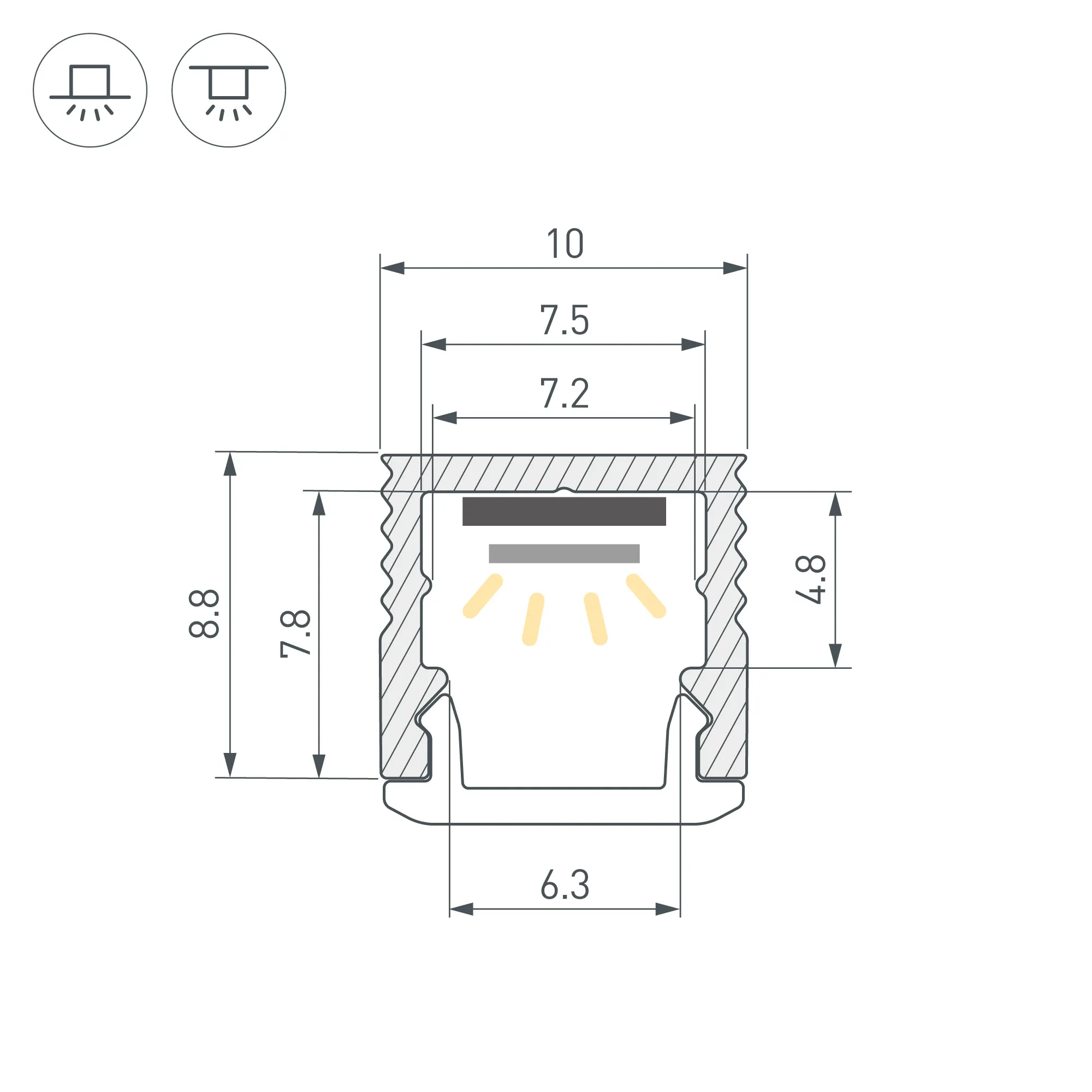 Алюминиевый анодированный микропрофиль для светодиодных лент и линеек. Цвет - черный RAL9005 (порошковая окраска). Габаритные размеры (L×W×H): 2000x10x8,8 мм. Ширина площадки для ленты 7,5 мм. Экраны, заглушки и другие аксессуары приобретаются отдельно. Цена за 1 метр.
