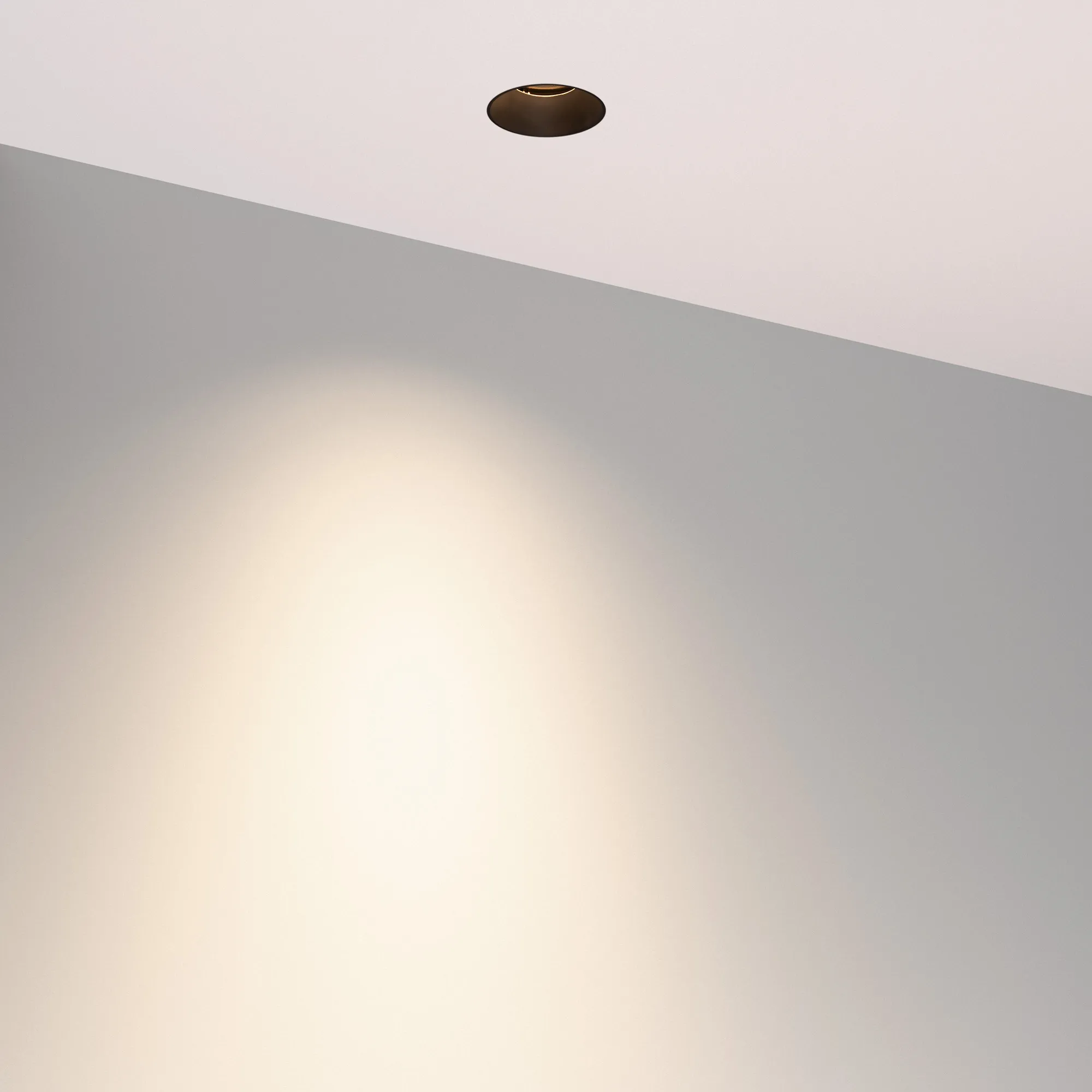 Встраиваемый безрамочный светильник под шпаклевку. Мощность 9 Вт, св. поток 700 лм, 78 лм/Вт, дневной 4000 K, CRI>90, угол 36°, напряжение питания 230 В. Чёрный круглый корпус, экран PMMA, степень защиты IP20. Размер: диаметр 65 мм, высота 63 мм, диаметр отражателя 40 мм. Монтаж встраиваемый, установочное отверстие диаметр 45 мм. Драйвер 26-40 В, 200 мА, пульсация <2%.