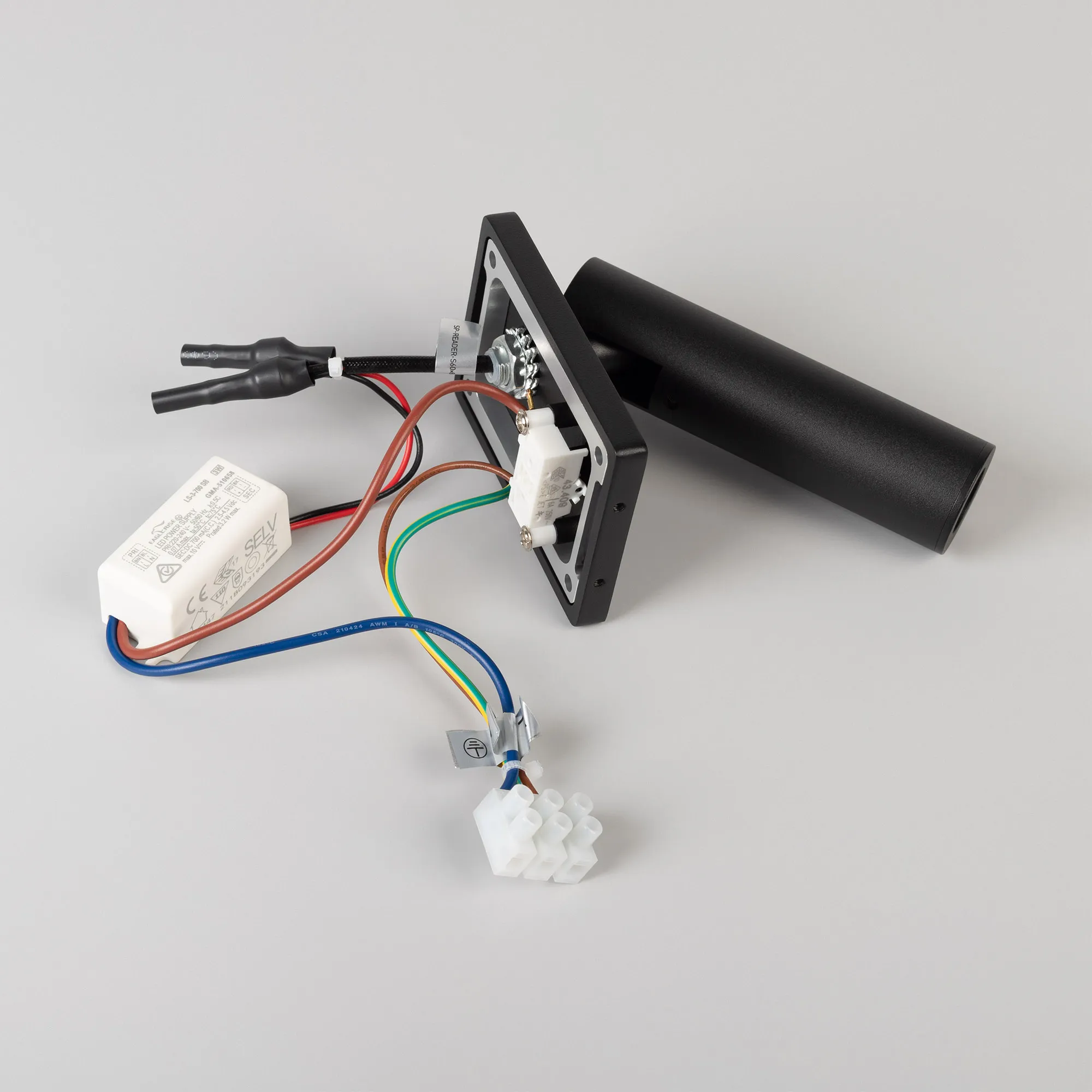 Встраиваемый настенный светильник 3 Вт, алюминиевый корпус в черном цвете с кнопкой включения. Цвет ТЕПЛЫЙ БЕЛЫЙ 3000K, св.поток 174 лм, CRI(Ra)>90, угол 20°. Размер Основание 60x86х8 мм, Светоизлучатель Ø30×110 мм. IP20. Питание AC220-240V, 3 Вт, встроенный выключатель, драйвер 2,5 - 4,5 В, 700 мА., габариты: длина 46 мм, ширина 23 мм, высота 21 мм; пульсация < 1%