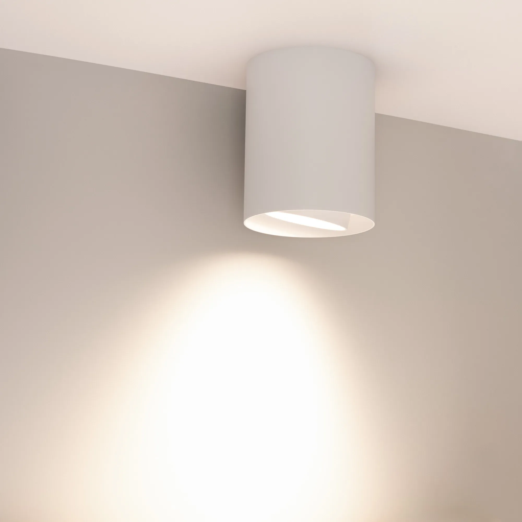 Накладной интерьерный светильник. Мощность 24 Вт, св. поток 2400 лм, 99 лм/Вт, дневной 4000 K, CRI>90, угол 50°, регулируемое направление луча 40°(20+20), поворотный световой модуль вокруг своей оси на 340°, UGR <11, напряжение питания 230 В. Белый круглый корпус из алюминия, степень защиты IP54. Размер: диаметр 132 мм, высота 165 мм. Монтаж накладной. Драйвер 27-45 В, 600мА, пульсация <1%.