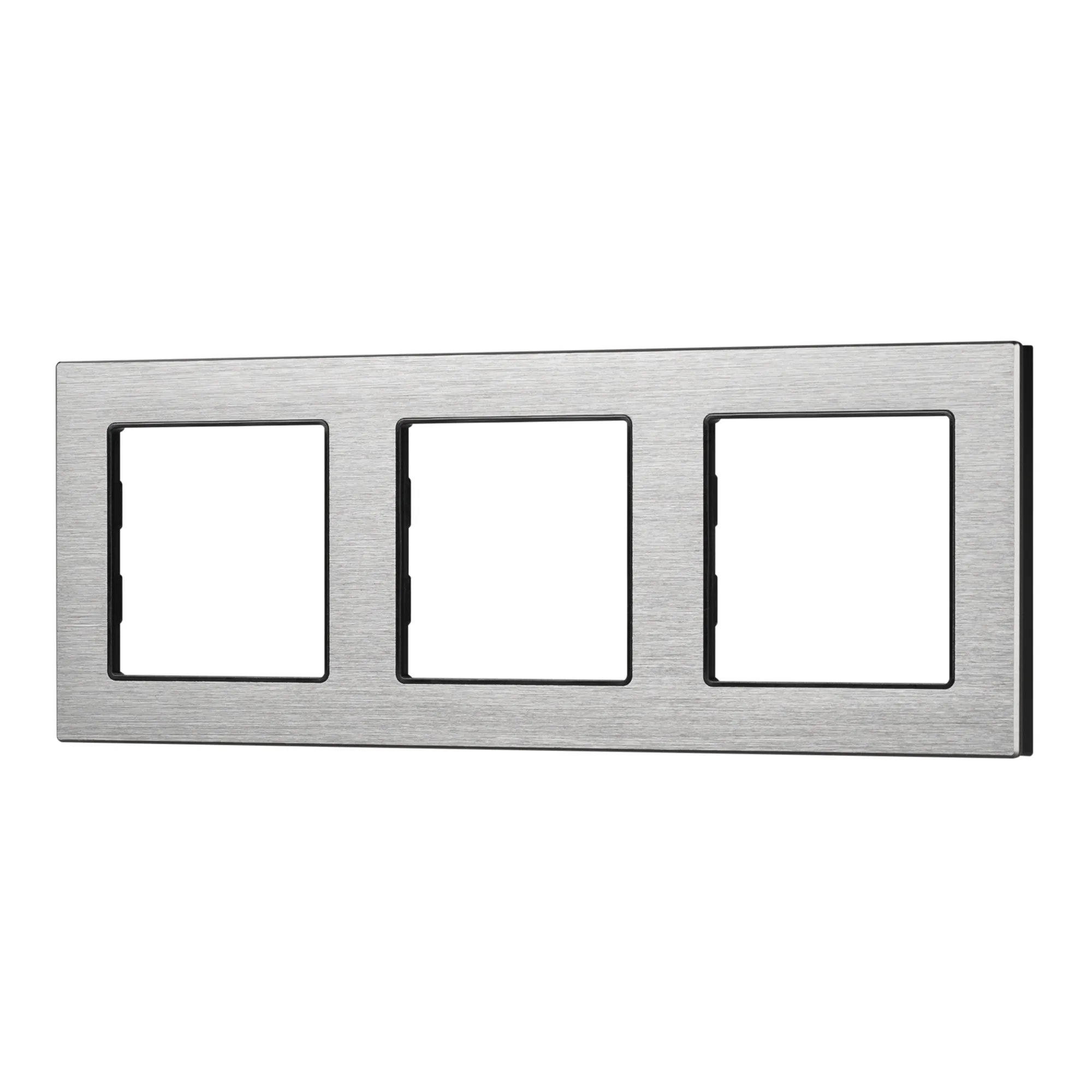 Рамка алюминиевая на 3 пост, под встраиваемый механизм (квадрат). Цвет - серый. Ориентации монтажа - горизонтальная/вертикальная.