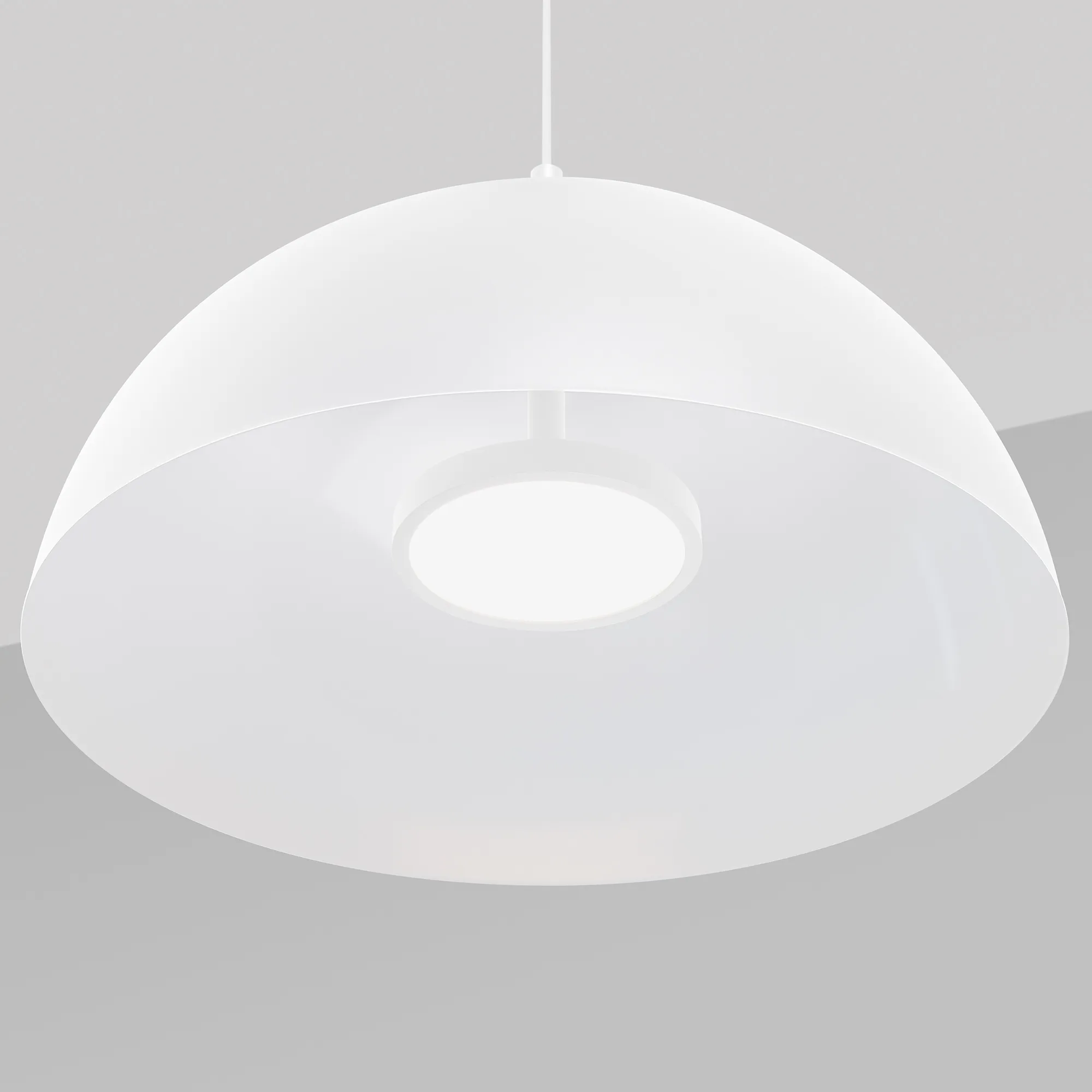 Подвесной светодиодный светильник SP-ALUME. Мощность 20 Вт, световой поток поток 1200 Лм, цветовая температура MIX 2700К-3000К-4000K, CRI>90, угол 120°, напряжение питания 230 В. Белый круглый корпус из стали, степень защиты IP33. Размер плафона: диаметр 500 мм, высота 250 мм. Монтаж подвесной, длина подвеса 1500 мм. В комплекте блок питания, пульт, токопроводящий подвес 1500м, чаша. Гарантия 3 года. Поставка в сборке.