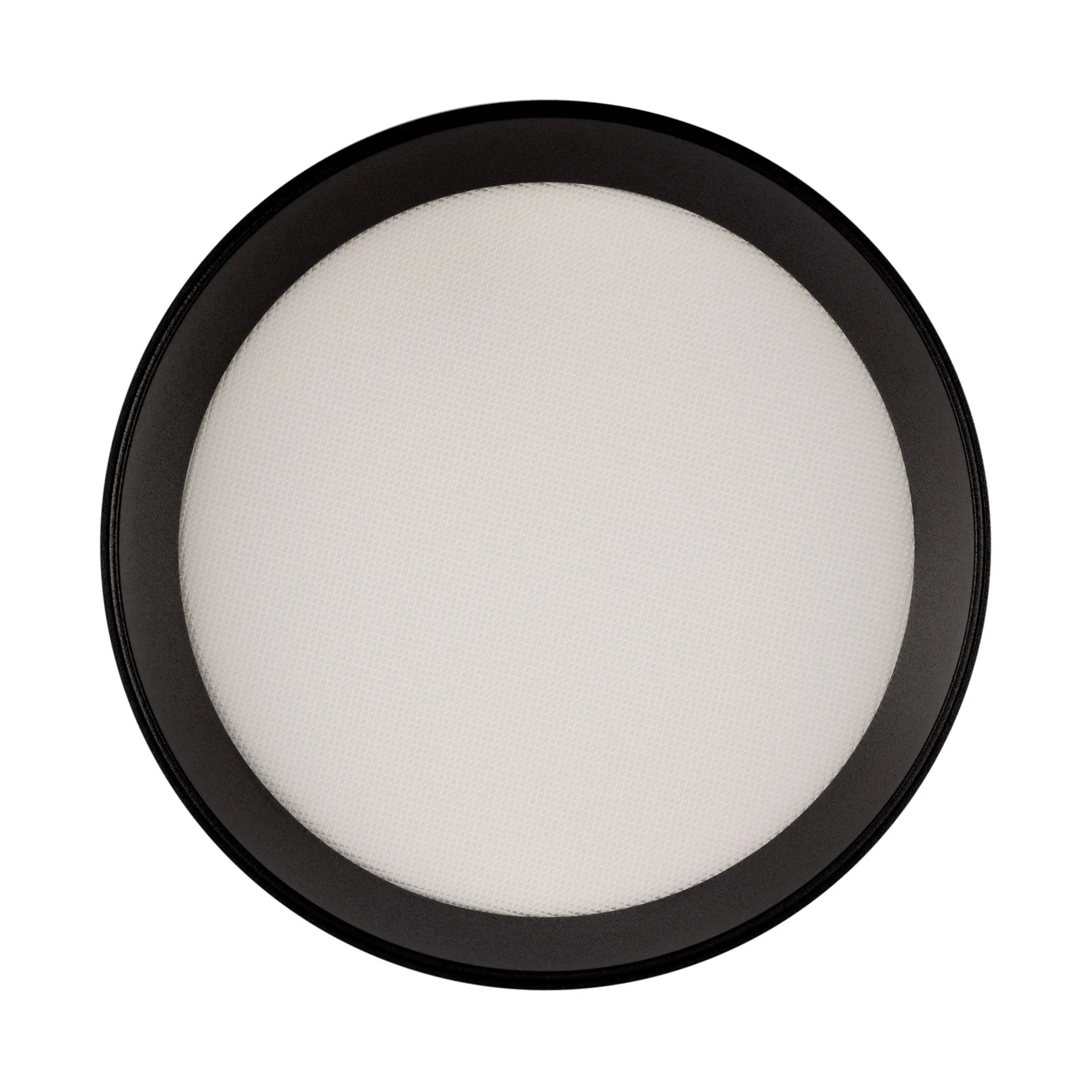 Накладной светильник. Мощность 15 Вт, св. поток 1100-1160лм, 80-85 лм/Вт, теплый 2700 K, теплый 3300K, дневной 4000K (переключается), CRI>90, угол 80°, напряжение питания 230 В. Черный круглый корпус из алюминия, экран PC, степень защиты IP54. Размер: диаметр 140 мм, высота 85 мм. Монтаж накладной. Драйвер 26-42 В, 350 мА, пульсация <2%.